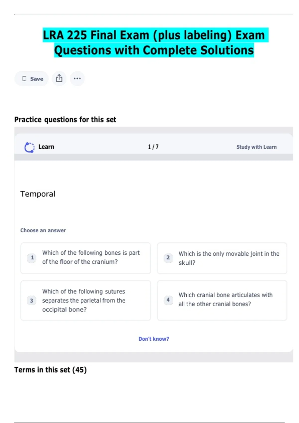 LRA 225 Final Exam (plus labeling) Exam
