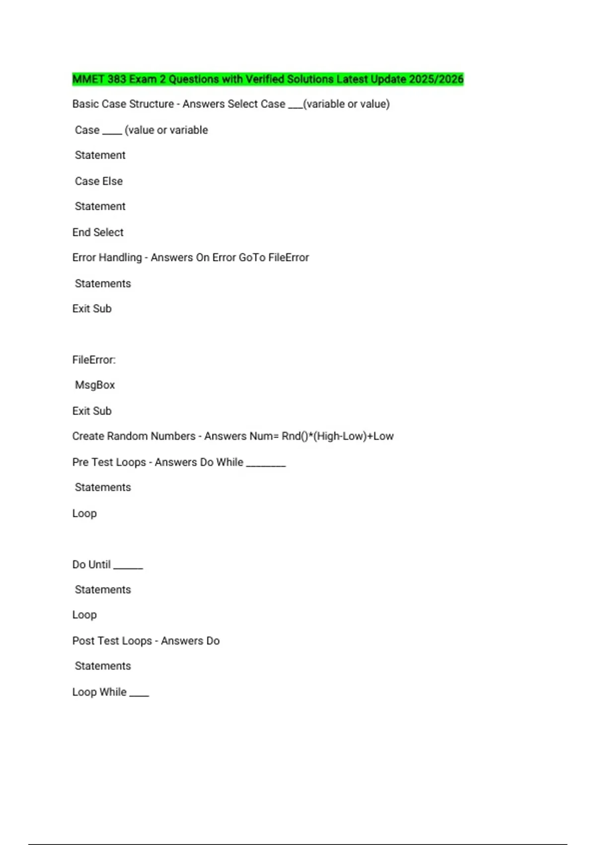 Basic Case Structure - Answers Select Case ___(variable or value)