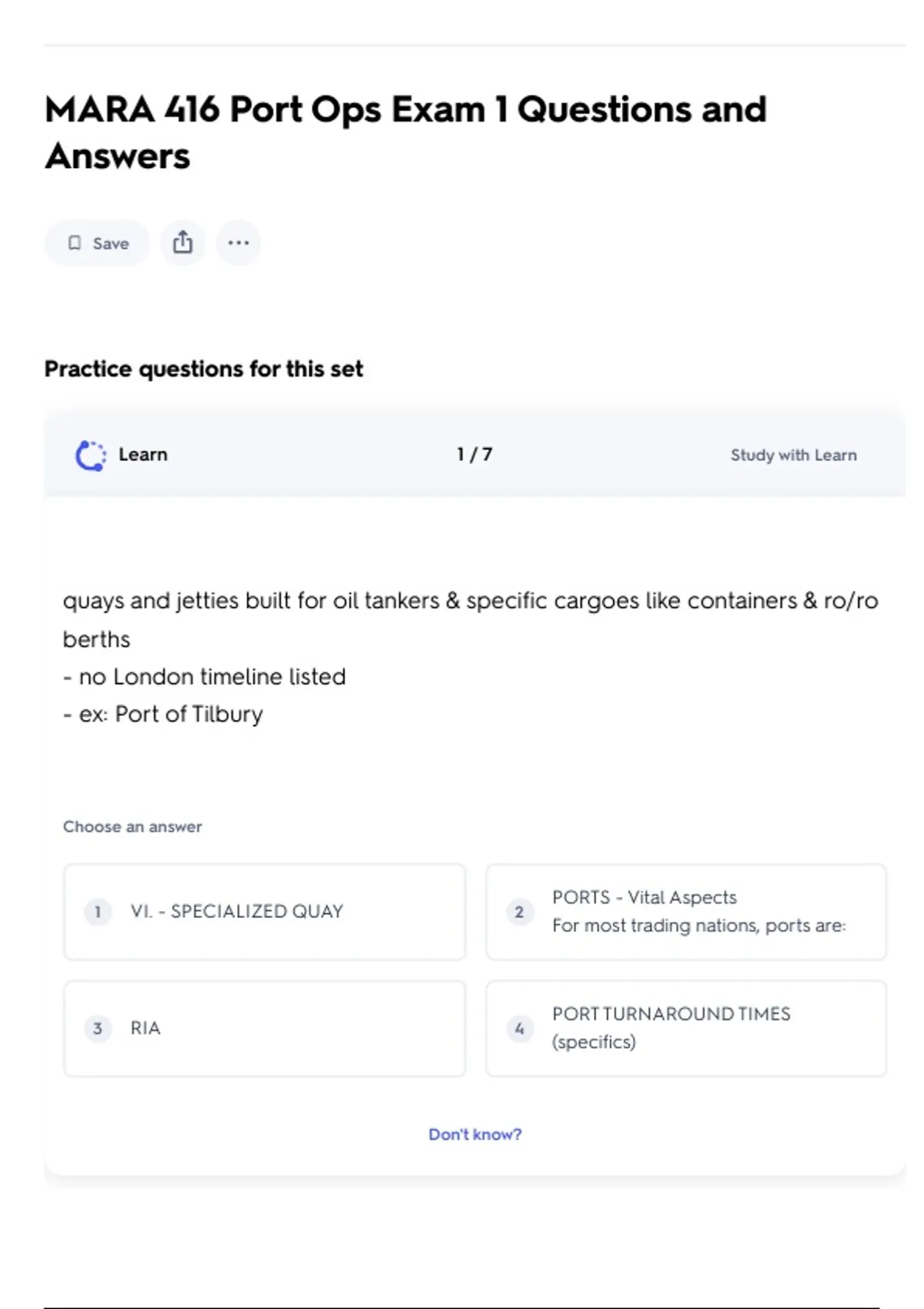 MARA 416 Port Ops Exam 1 Questions and Answers