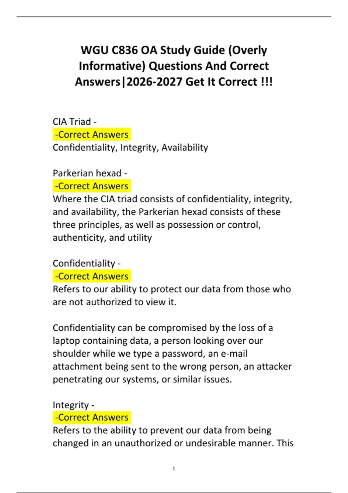 WGU C836 OA Study Guide (Overly Informative) Questions And Correct Answers| Get It Corre