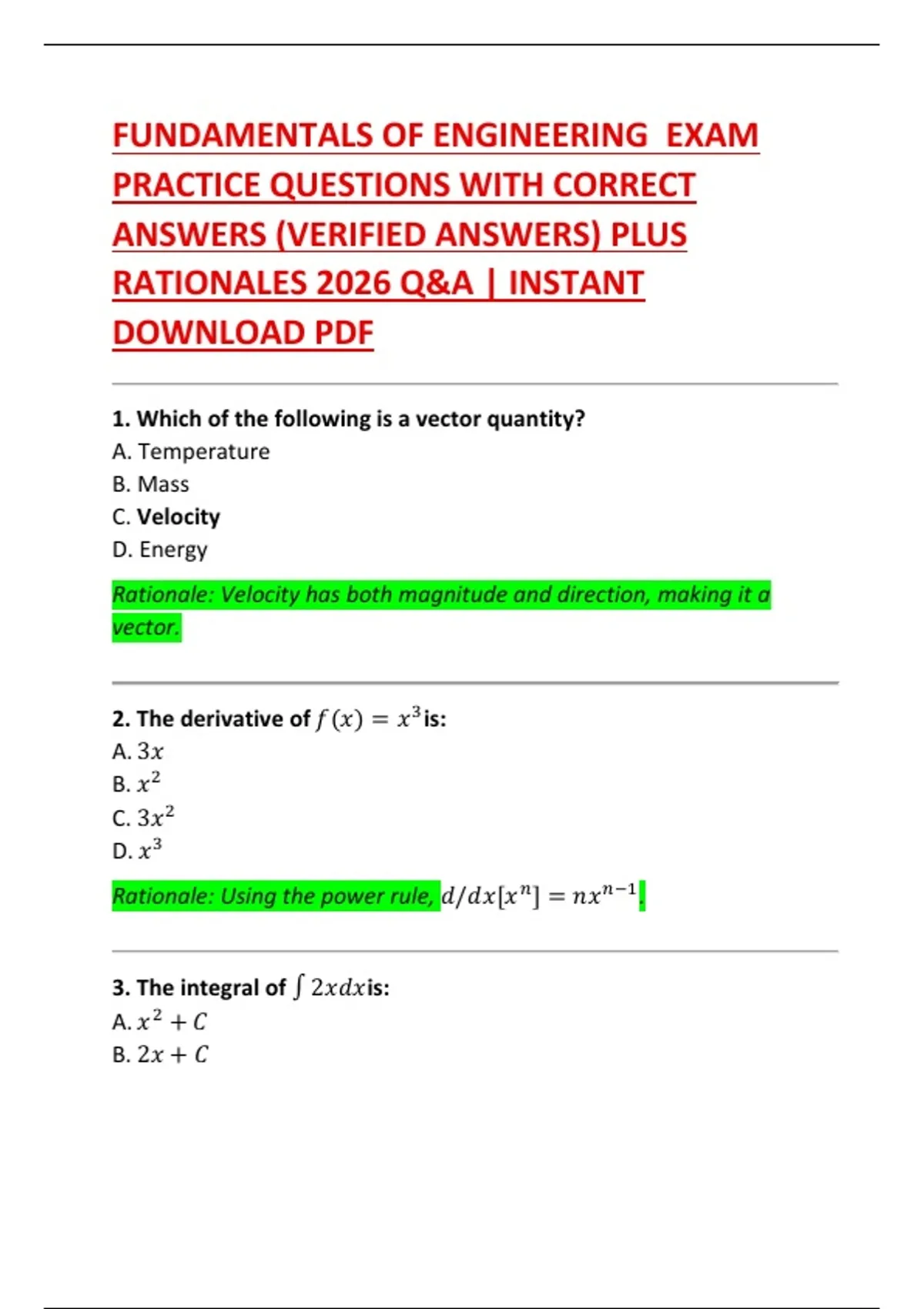 Rationale: Using the power rule, 𝑑/𝑑𝑥[𝑥 𝑛 ] = 𝑛𝑥 𝑛−1 .