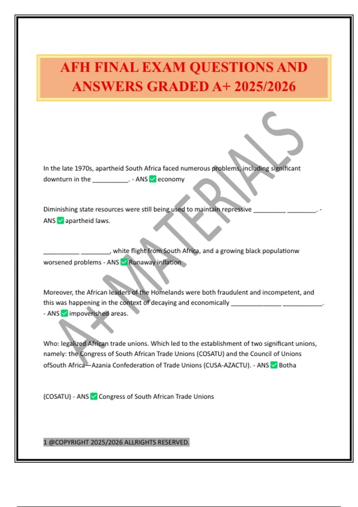 AFH FINAL EXAM QUESTIONS AND ANSWERS GRADED A+ 2025/2026