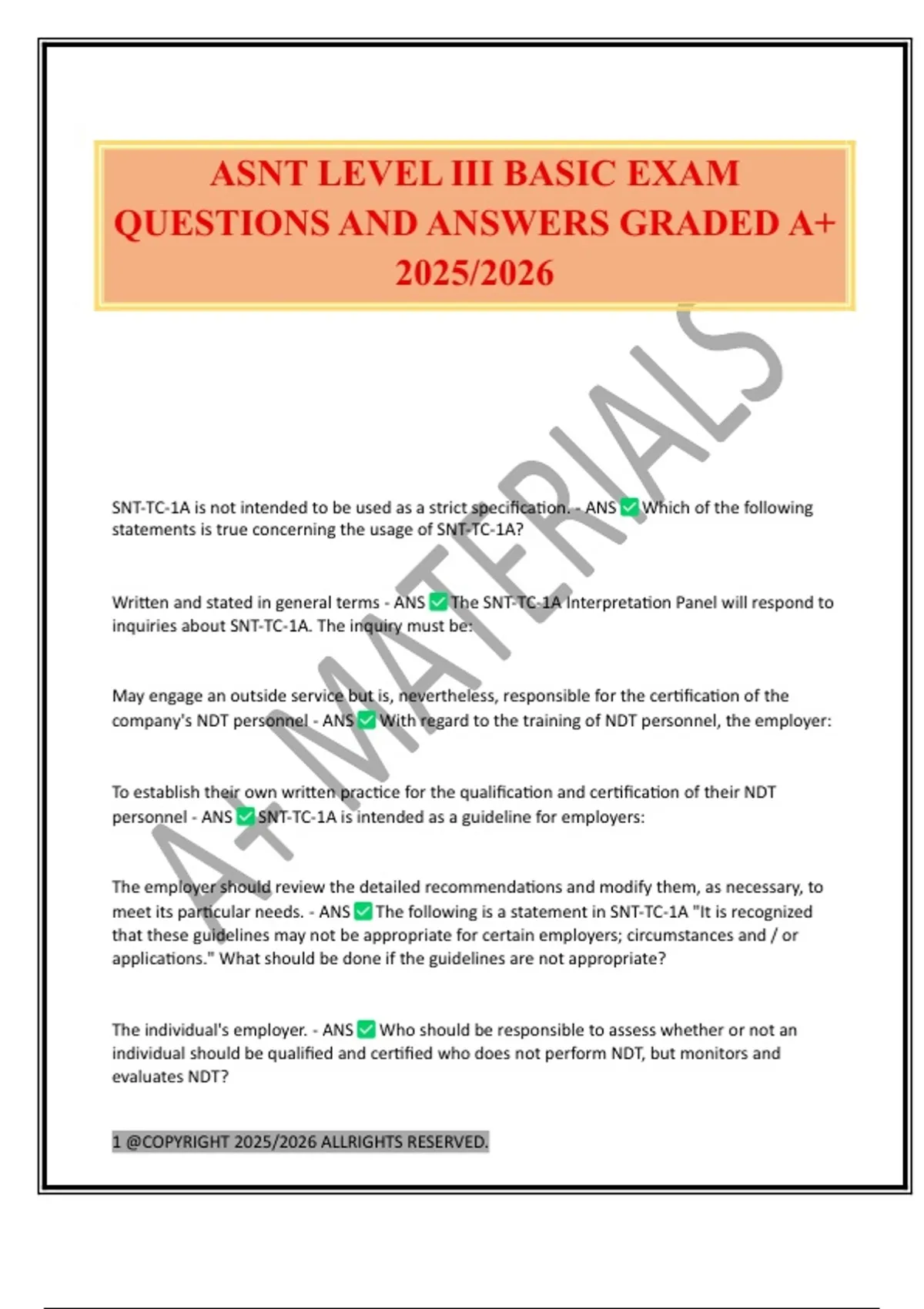 SNT-TC-1A is not intended to be used as a strict specification. - ANS Which of the following