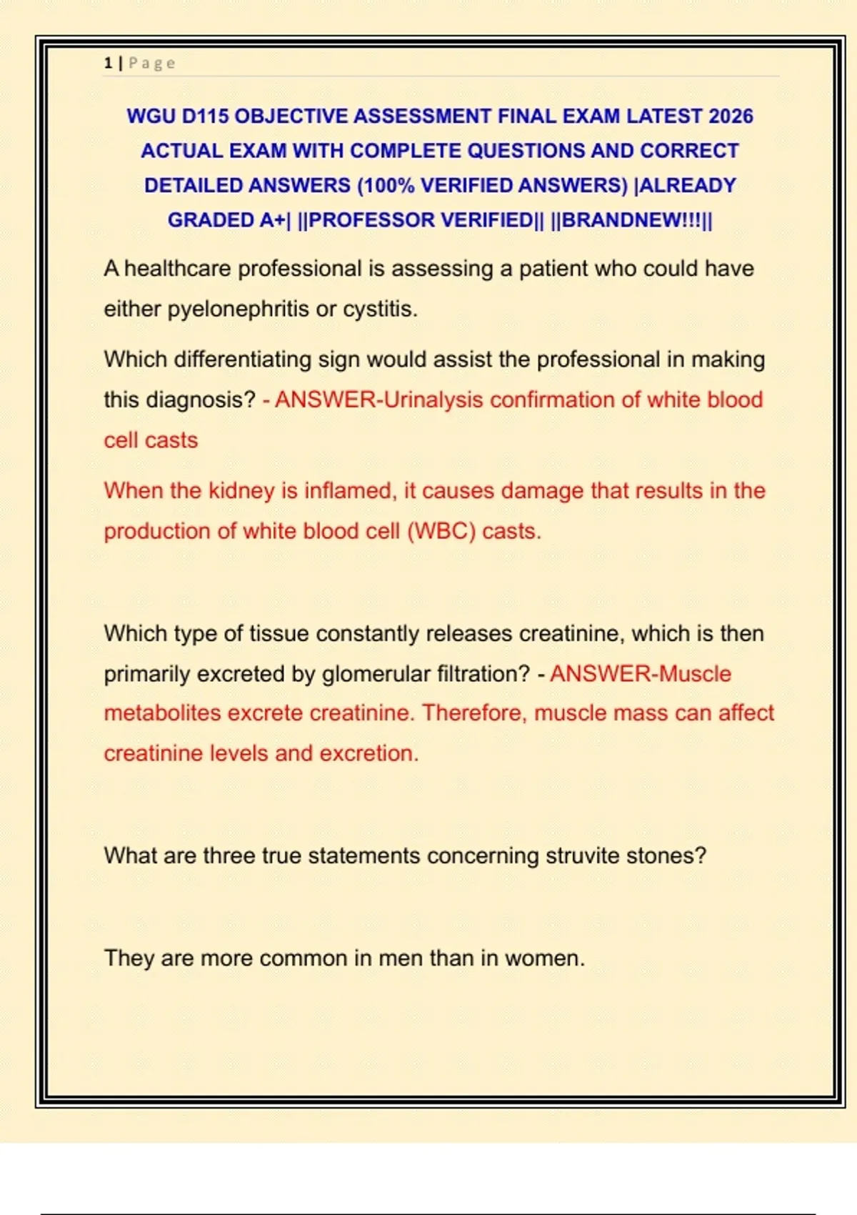 WGU D115 OBJECTIVE ASSESSMENT FINAL EXAM LATEST 2026