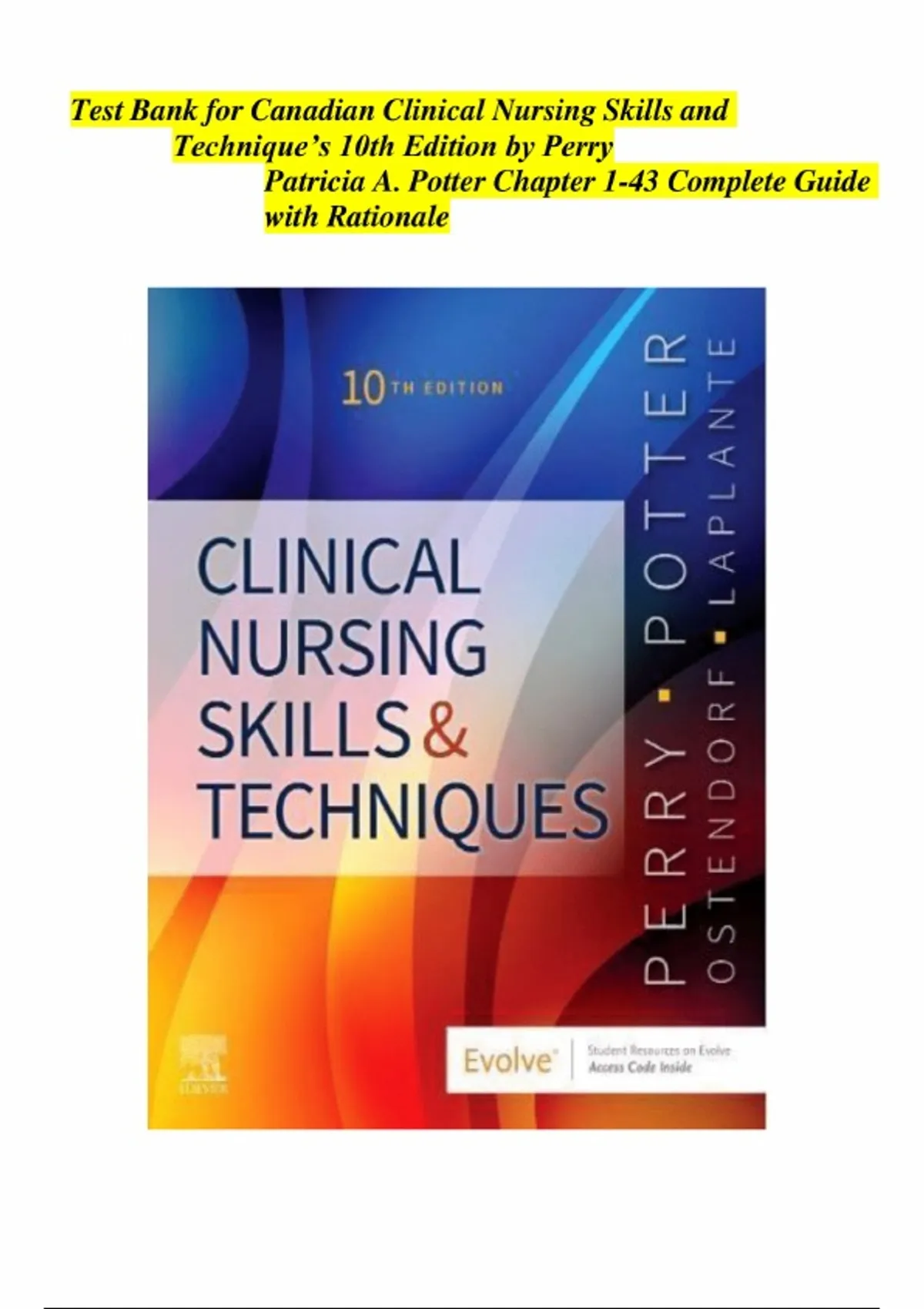 Test Bank for Canadian Clinical Nursing Skills and Technique’s 10th Edition by Perry Patricia A. Potter.|All Chapters 1-43 Complete Guide with Rationales.