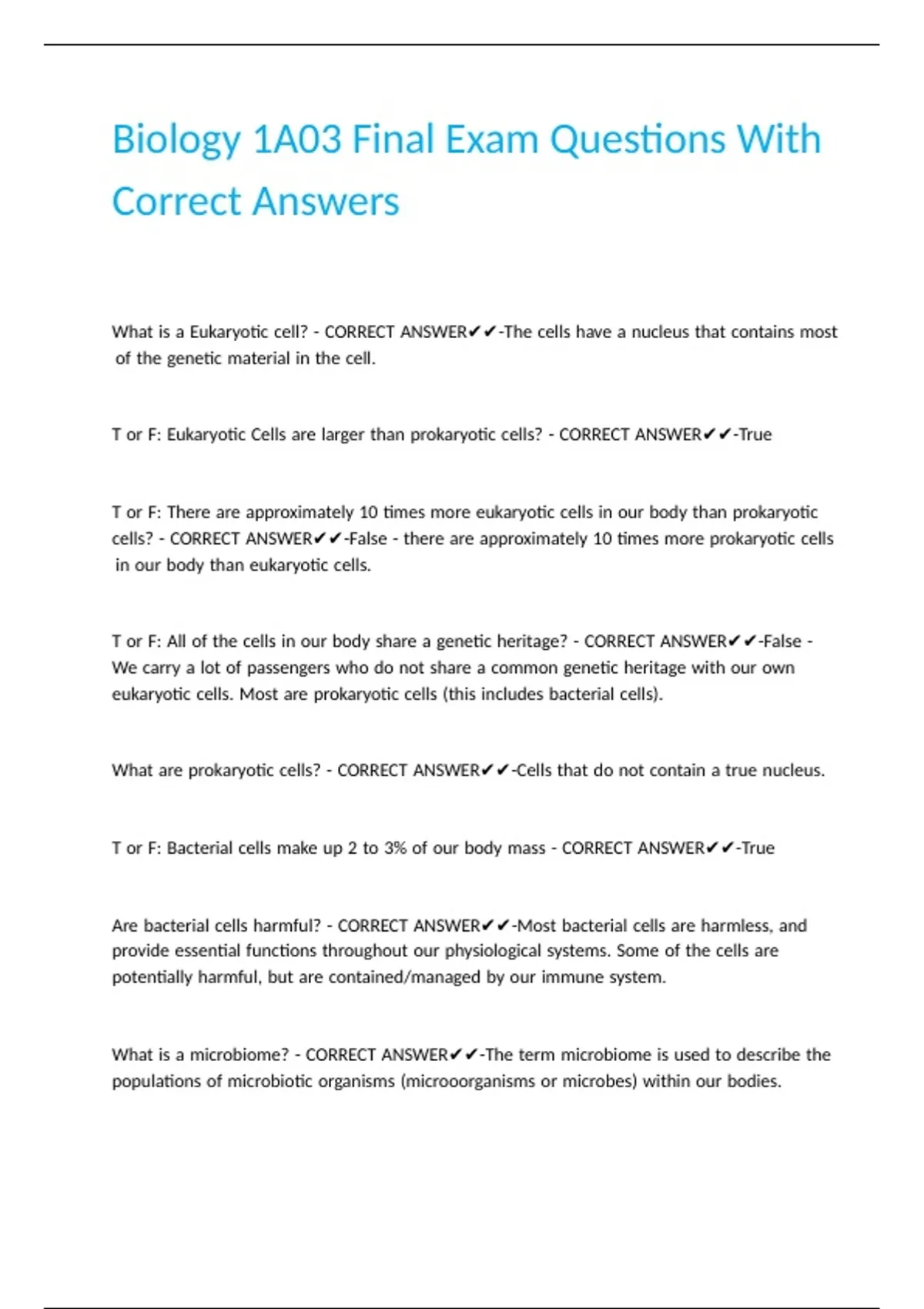 Are |bacterial |cells |harmful? |- |CORRECT |ANSWER✔✔-Most |bacterial |cells |are |harmless, |and |