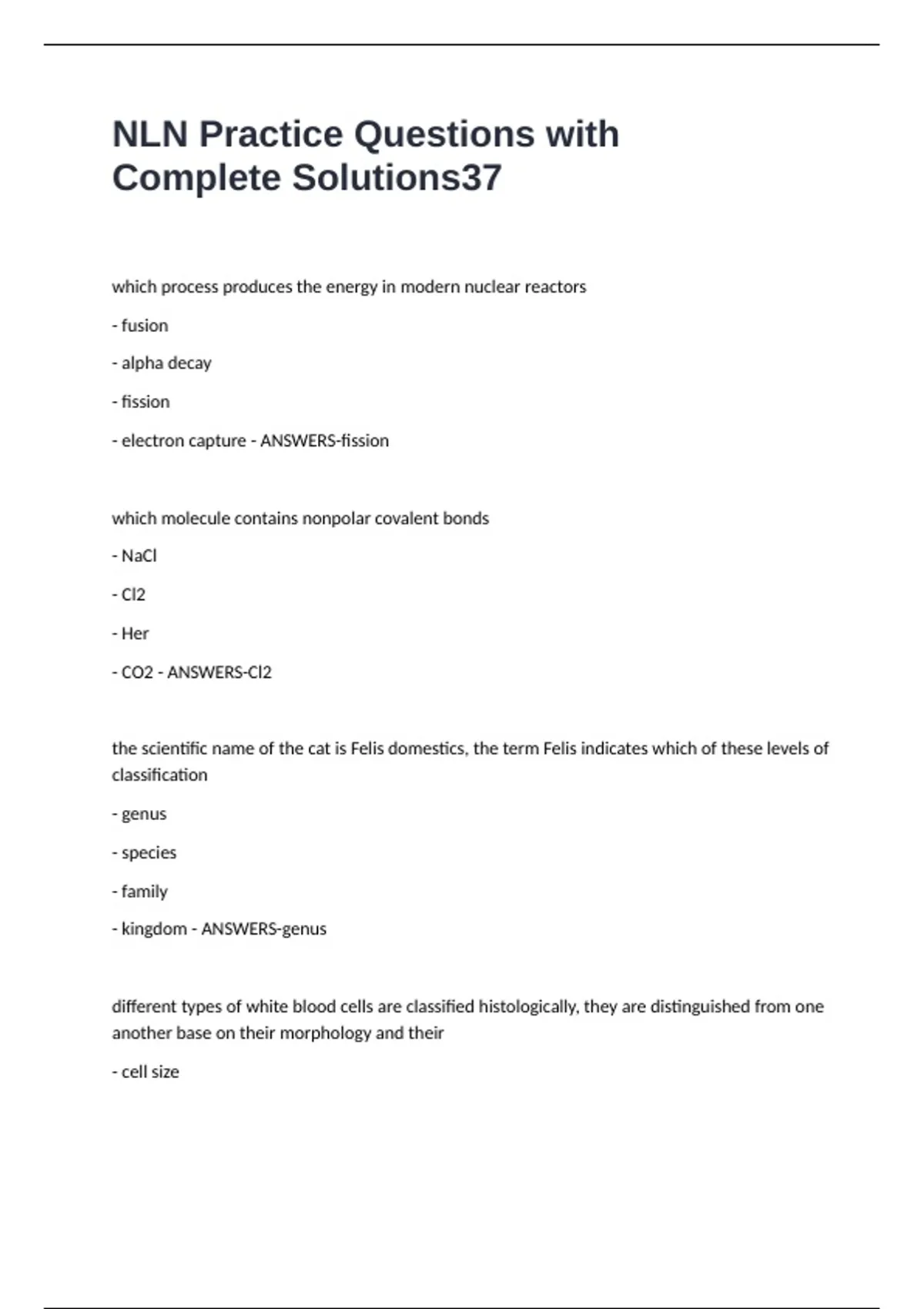 NLN Practice Questions with Complete Solutions