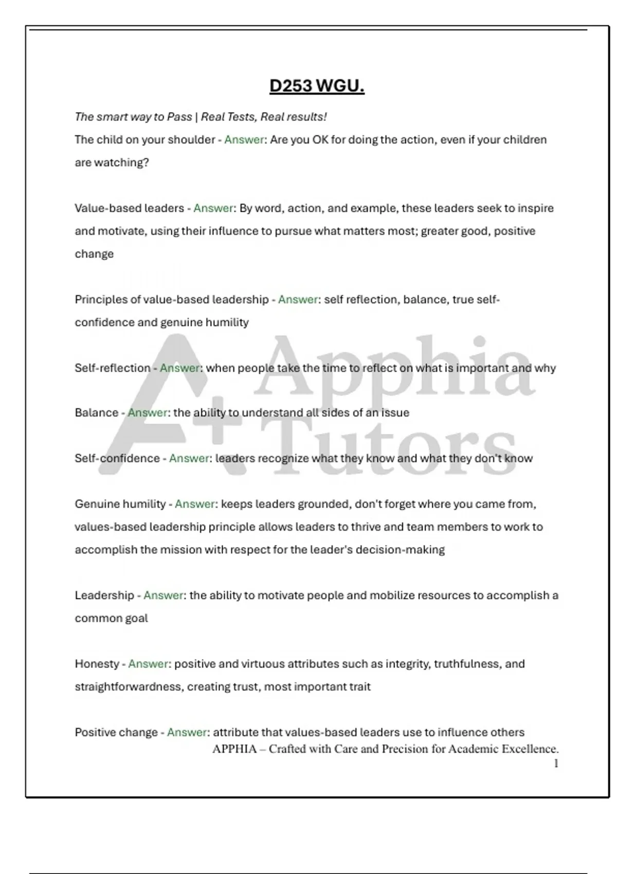 Value-based leaders - Answer: By word, action, and example, these leaders seek to inspire