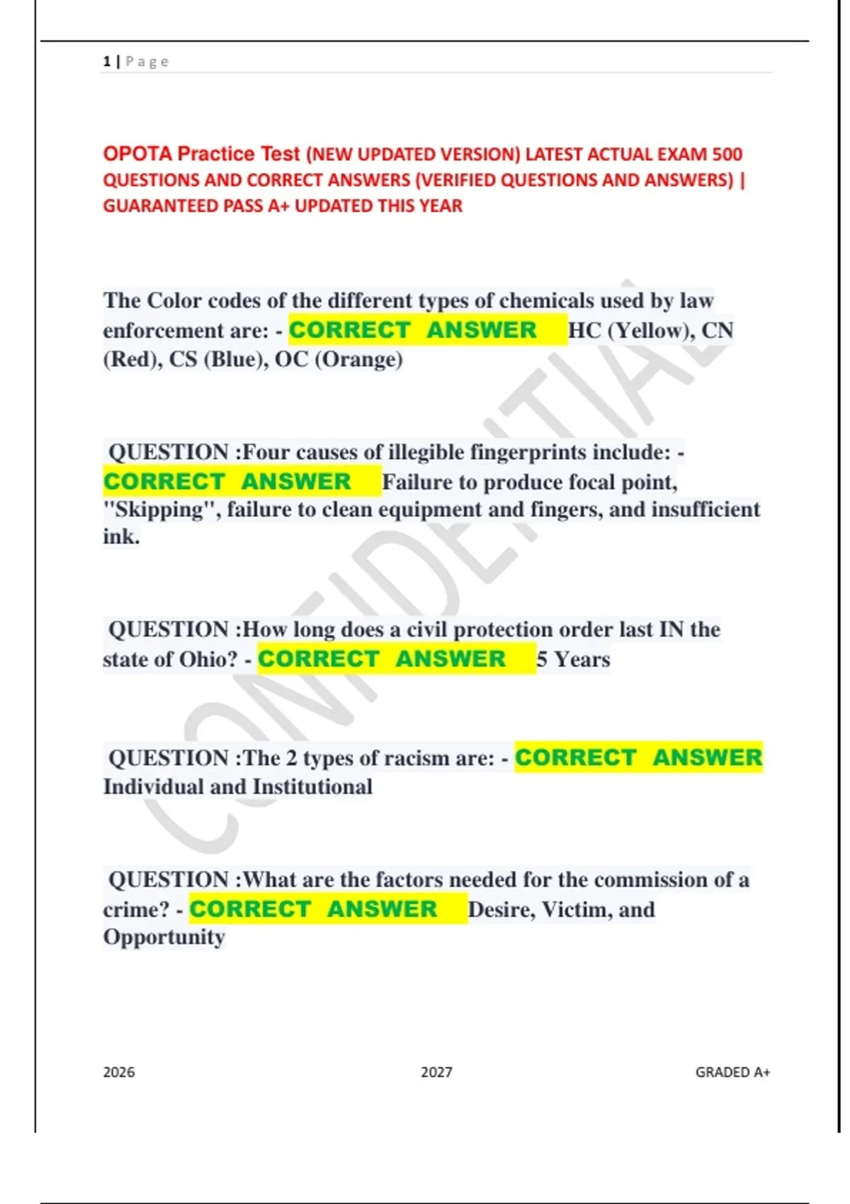 OPOTA Practice Test (NEW UPDATED VERSION) LATEST ACTUAL EXAM 500
