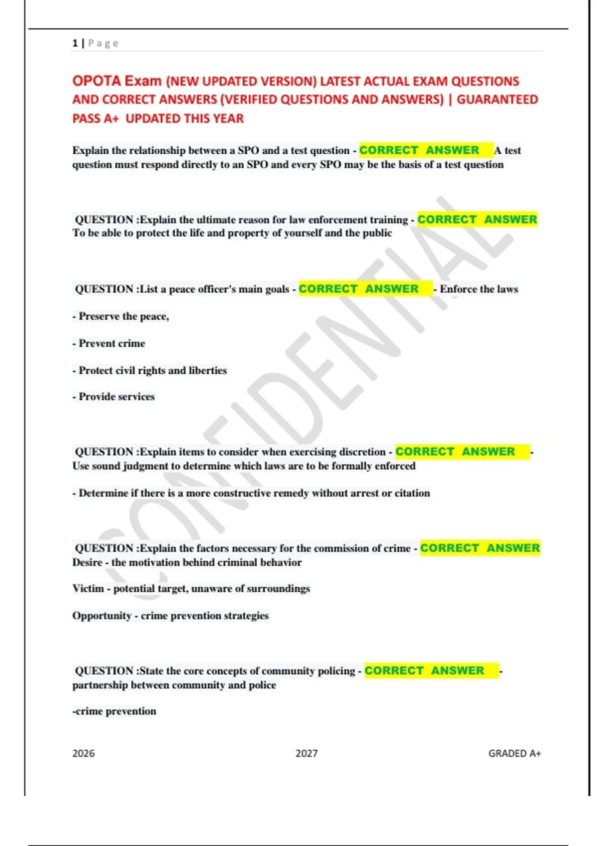 OPOTA Exam (NEW UPDATED VERSION) LATEST ACTUAL EXAM QUESTIONS