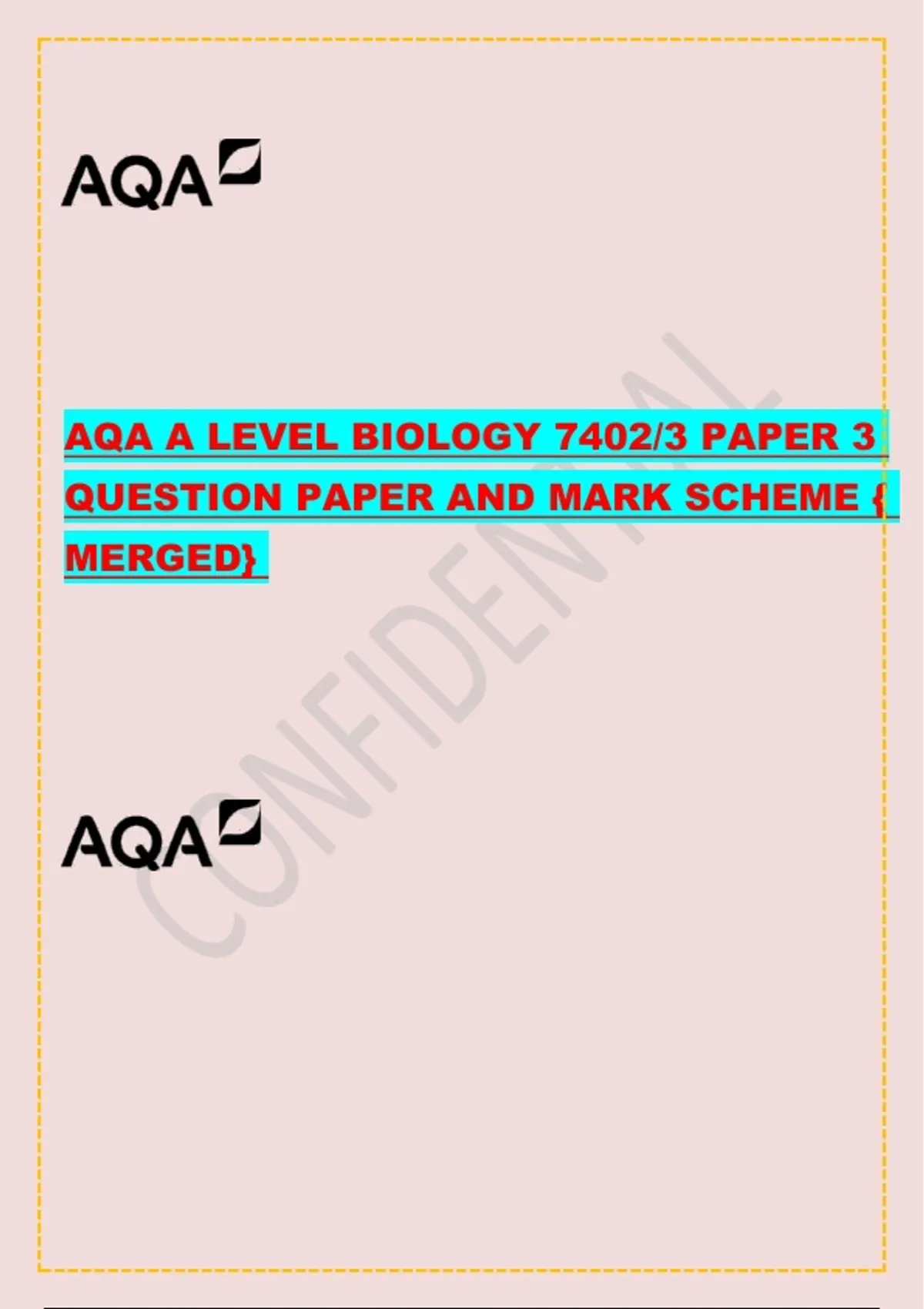 AQA A LEVEL BIOLOGY 7402/3 PAPER 3