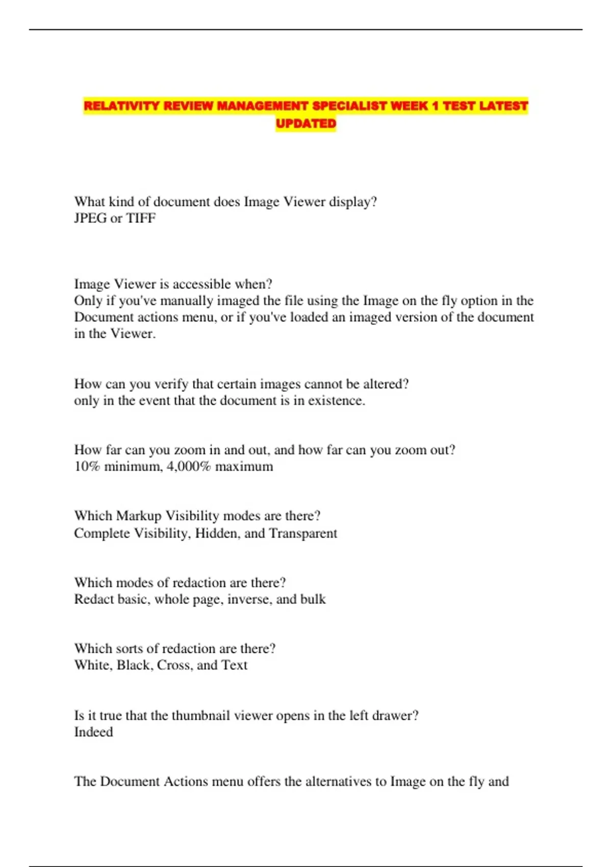 RELATIVITY REVIEW MANAGEMENT SPECIALIST WEEK 1 TEST LATEST UPDATED