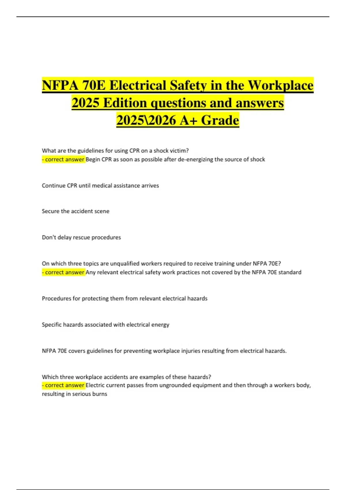 - correct answer Begin CPR as soon as possible after de-energizing the source of shock