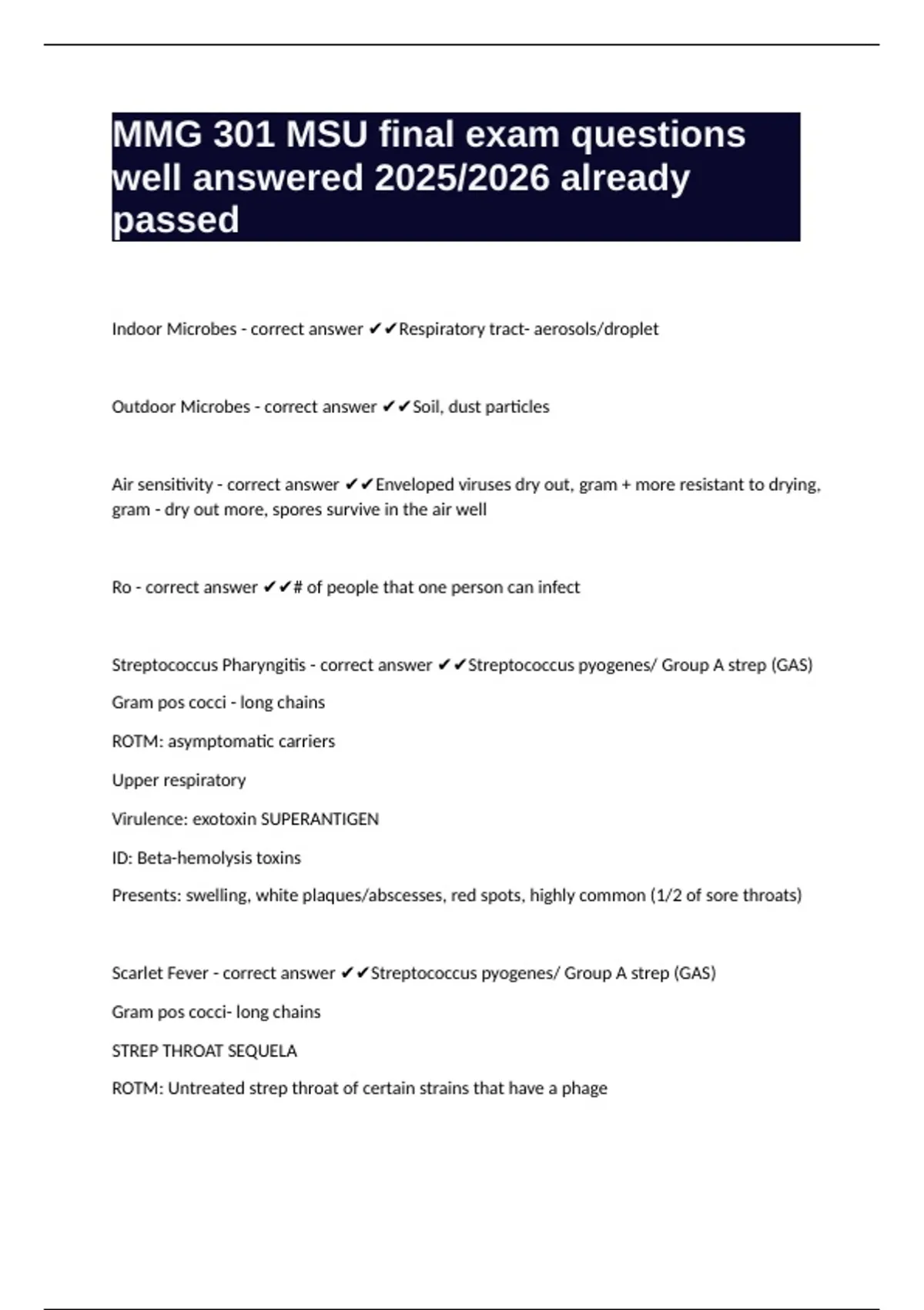 Indoor Microbes - correct answer ✔✔Respiratory tract- aerosols/droplet