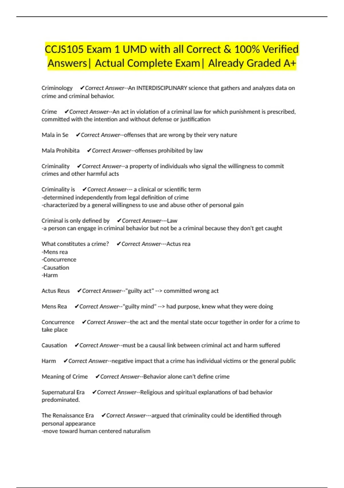 Crime ✔Correct Answer--An act in violation of a criminal law for which punishment is prescribed,