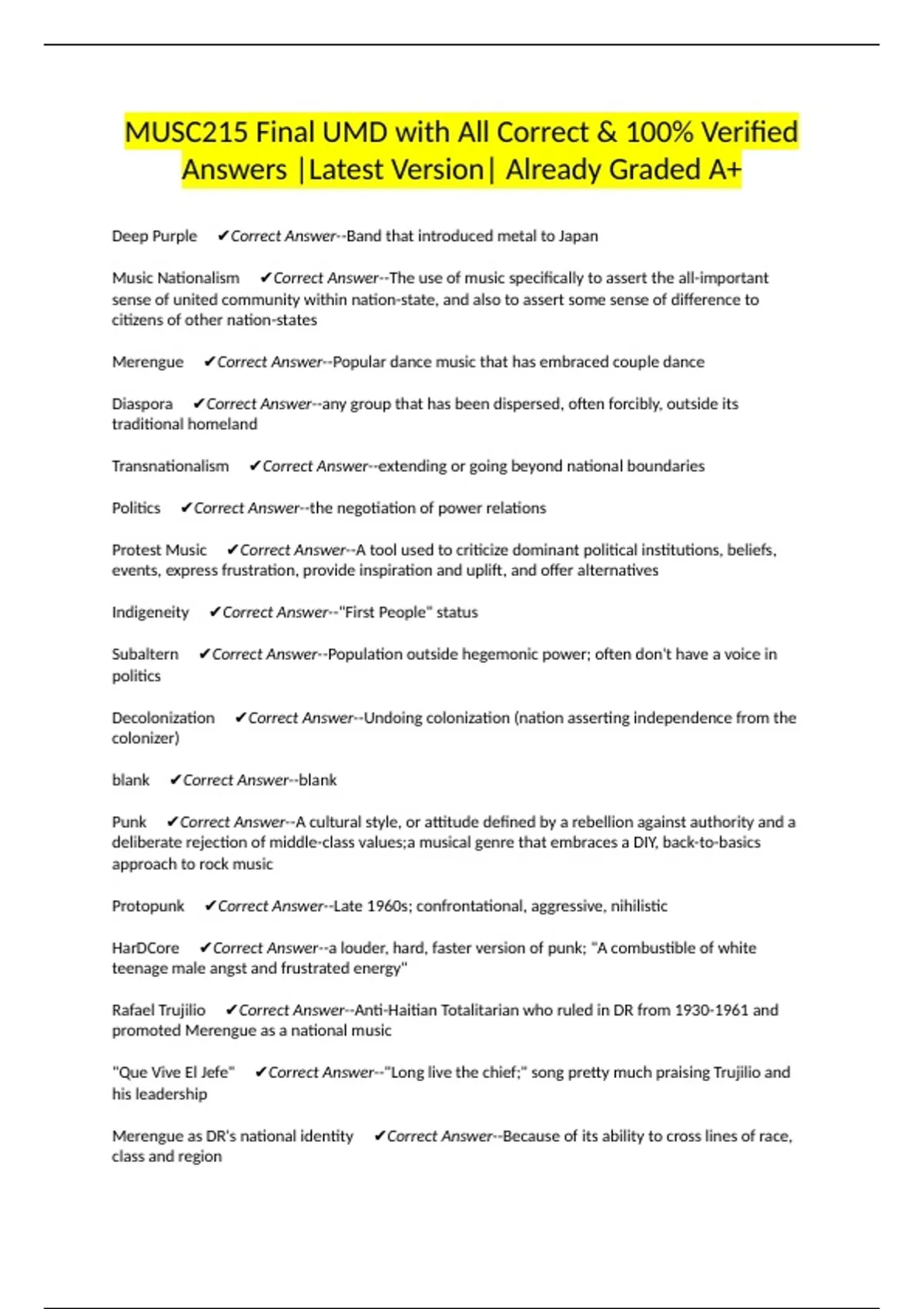Music Nationalism ✔Correct Answer--The use of music specifically to assert the all-important