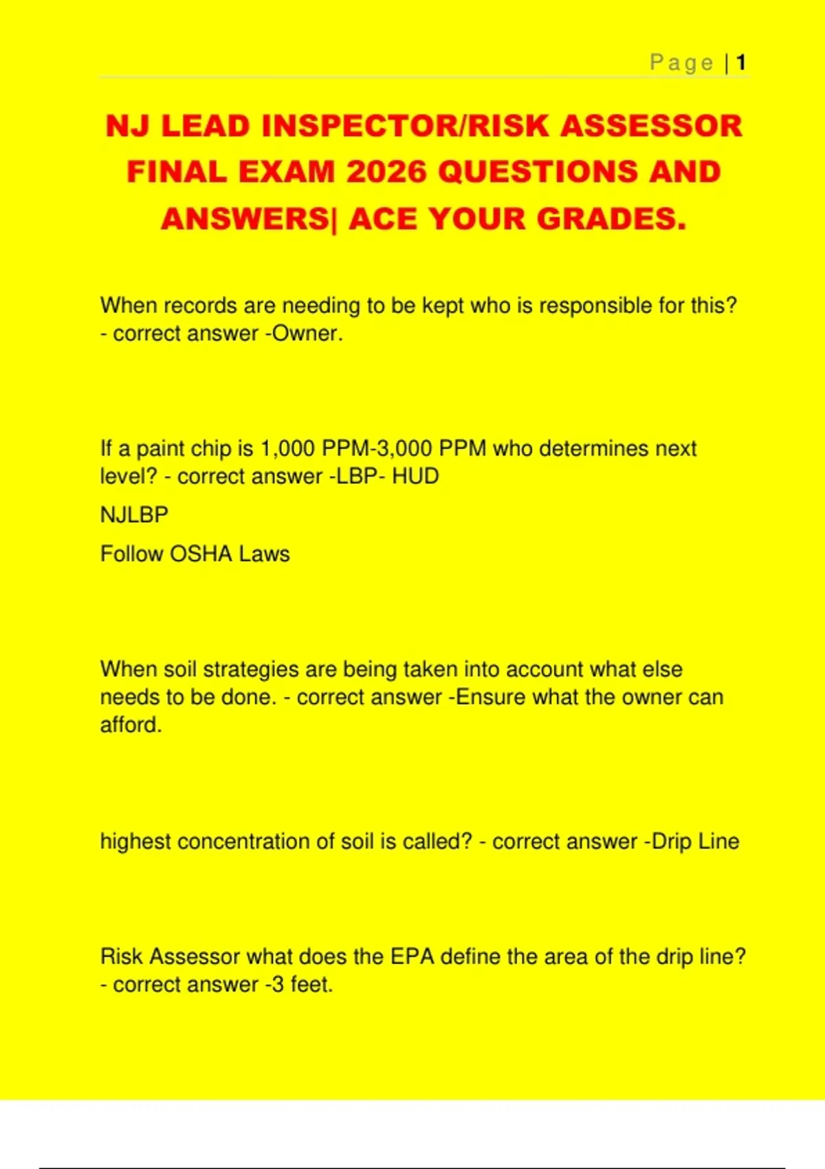 NJ LEAD INSPECTOR/RISK ASSESSOR FINAL EXAM 2026 QUESTIONS AND ANSWERS| ACE YOUR GRADES.