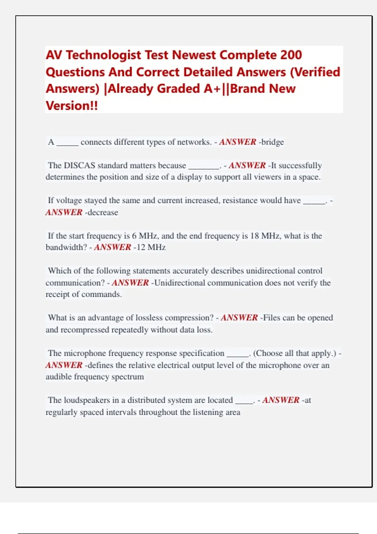on the operation of an AV system. - ANSWER -Eliminate the need for a service