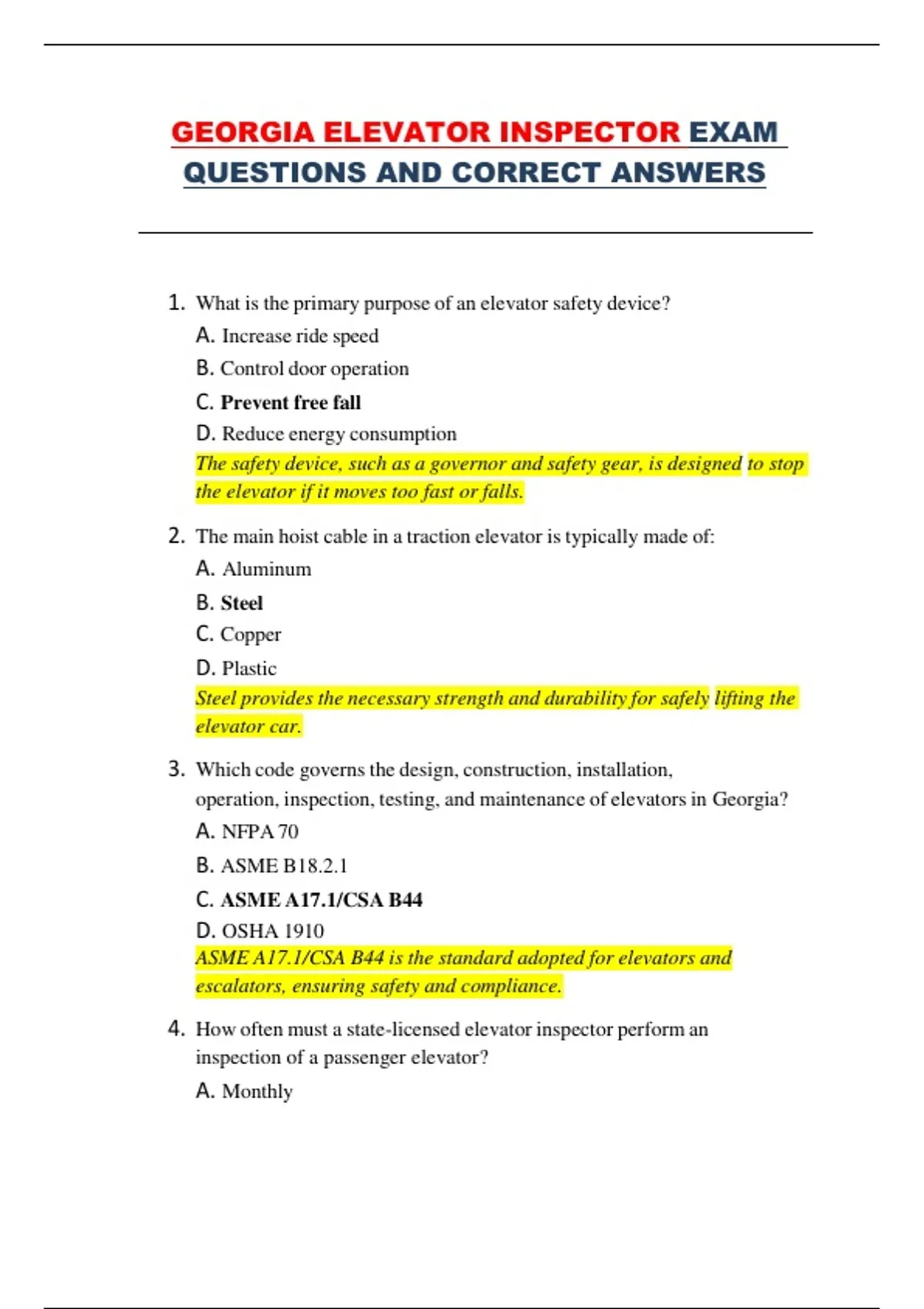 operation, inspection, testing, and maintenance of elevators in Georgia?