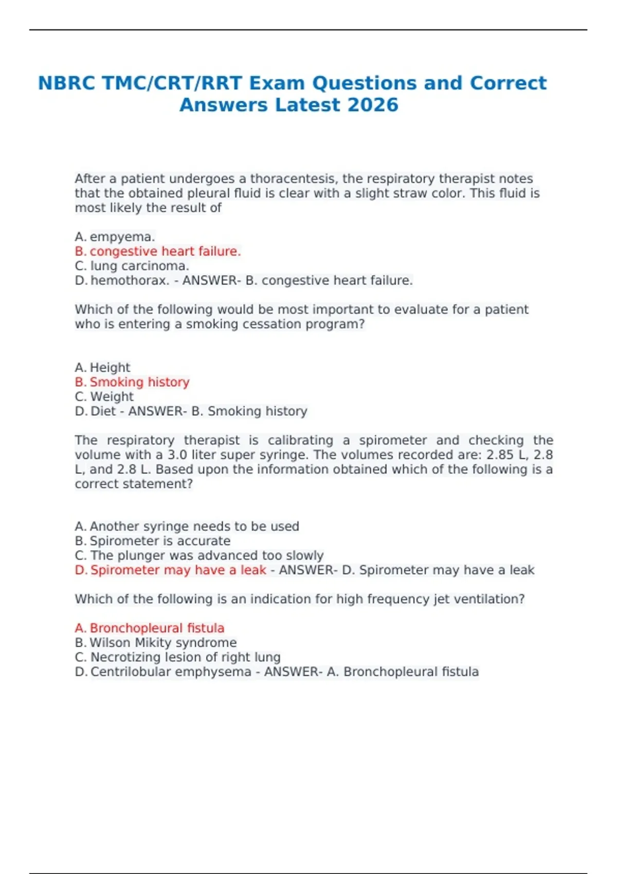 NBRC TMC/CRT/RRT Exam Questions and Correct