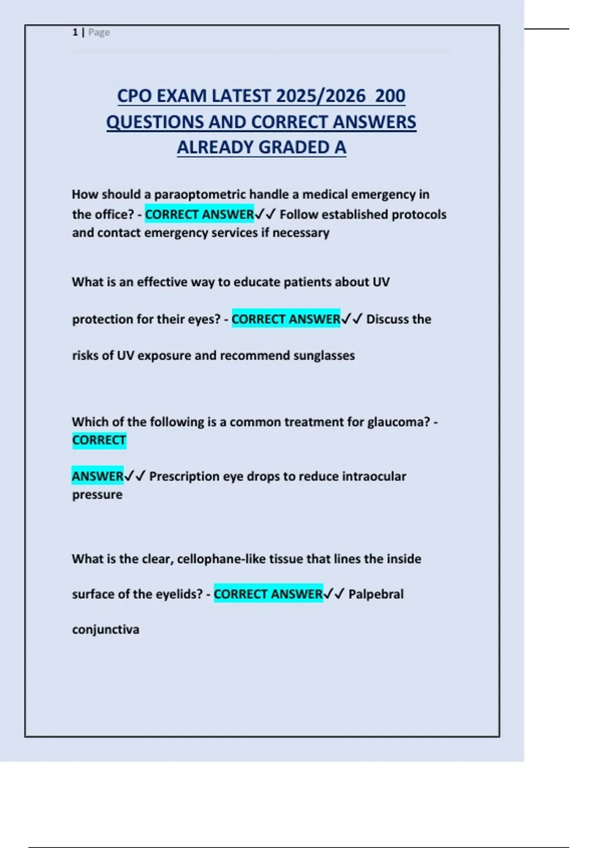 CPO EXAM LATEST 2025/2026 200 QUESTIONS AND CORRECT ANSWERS ALREADY GRADED A