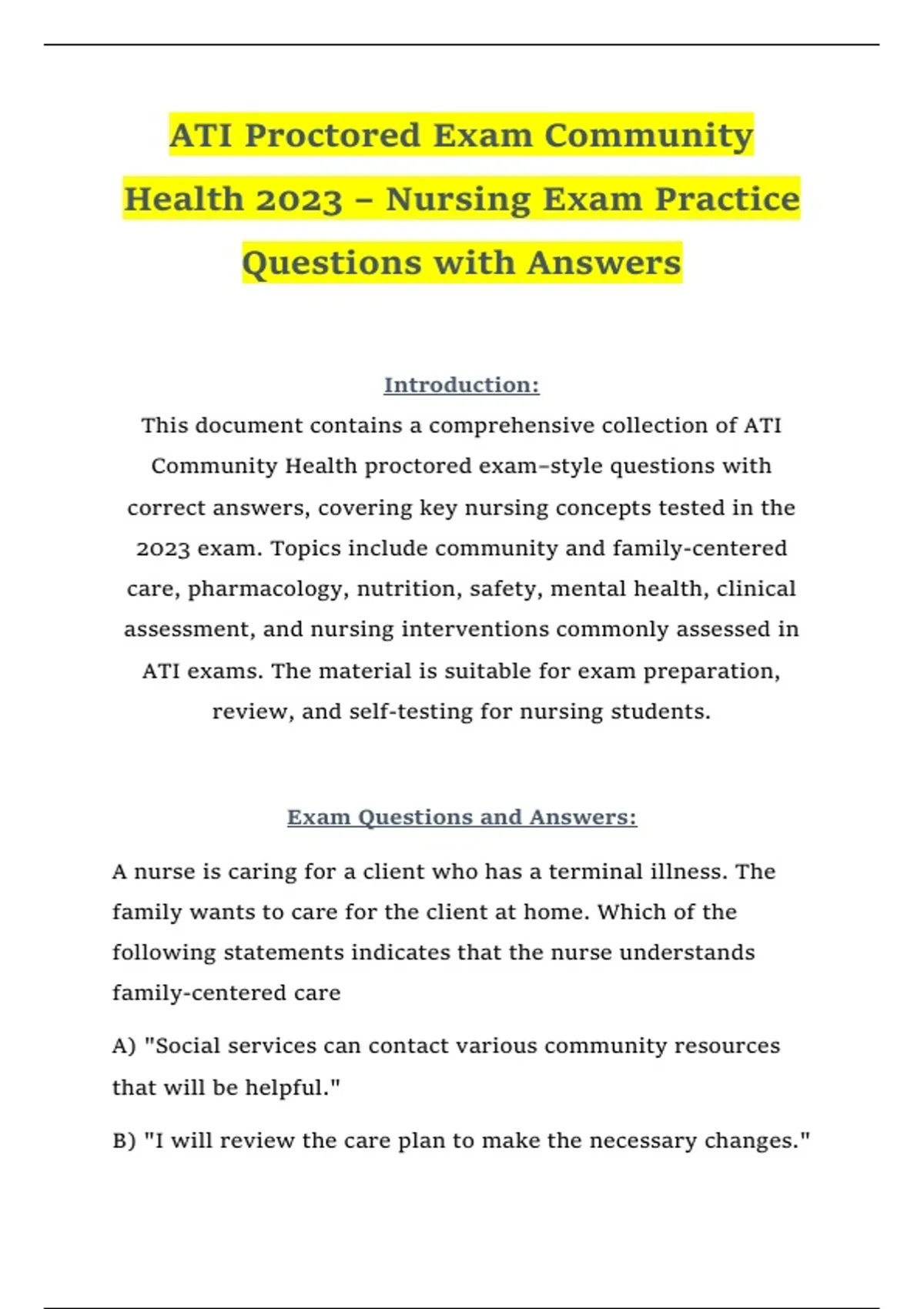 ATI exams. The material is suitable for exam preparation,