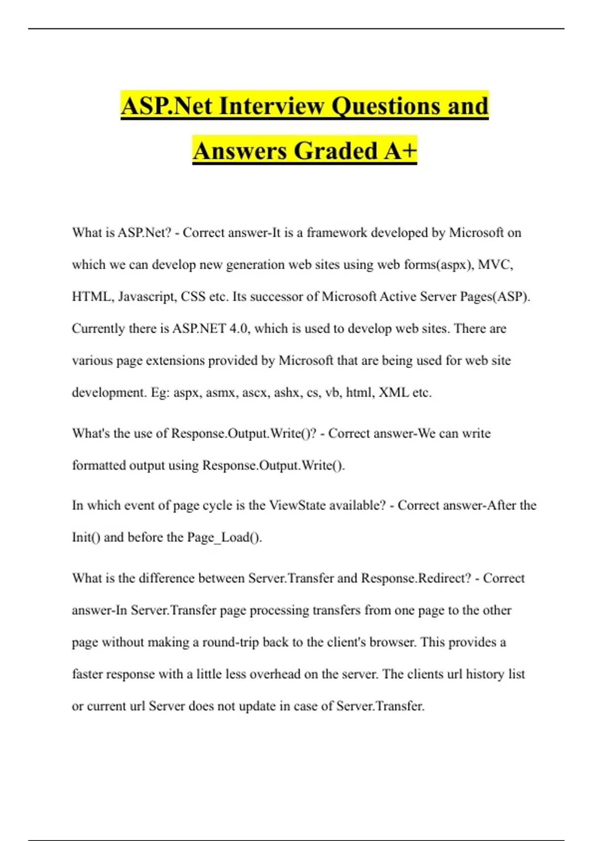 What is ASP.Net? - Correct answer-It is a framework developed by Microsoft on