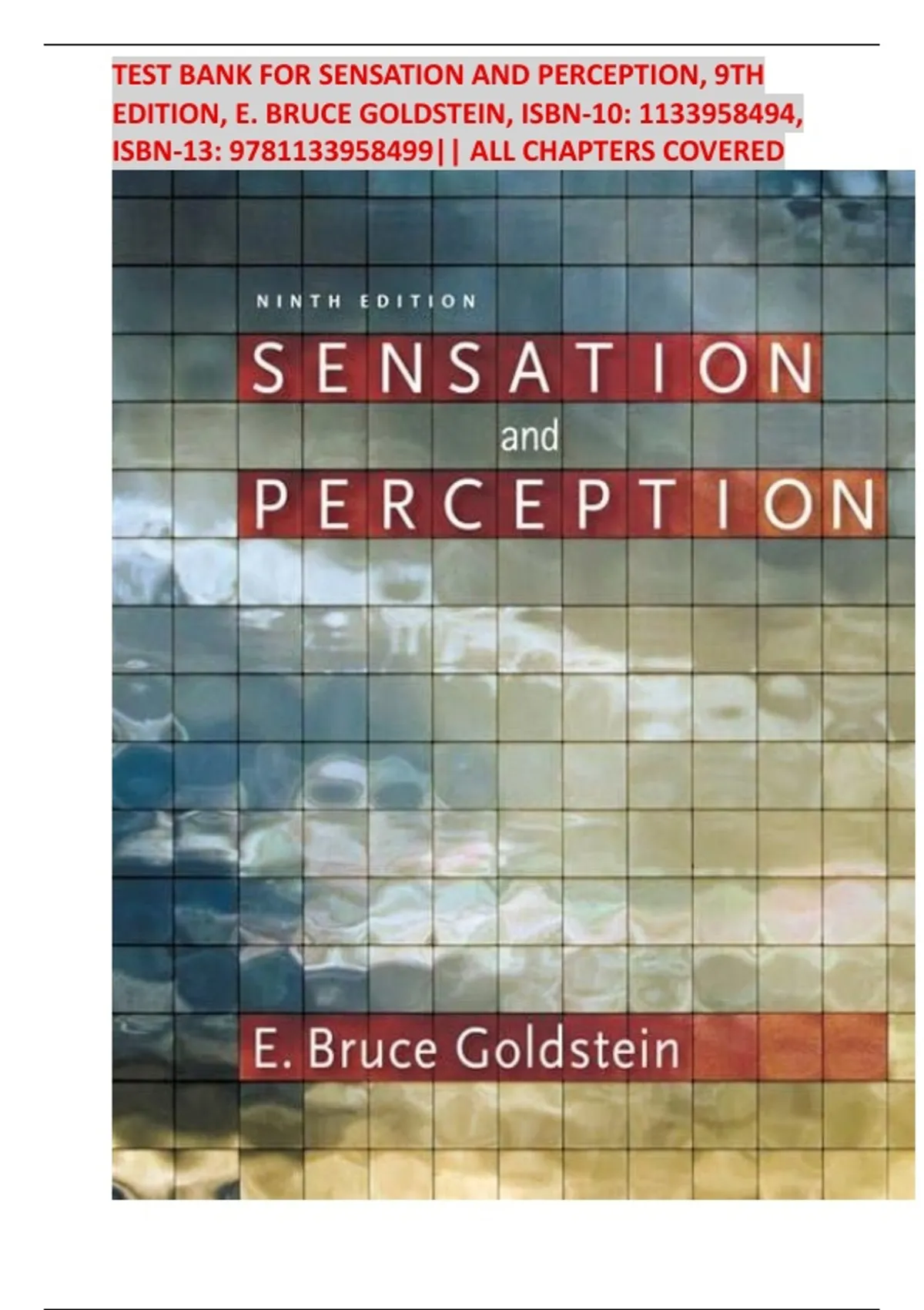 TEST BANK FOR SENSATION AND PERCEPTION, 9TH EDITION, E. BRUCE GOLDSTEIN,|| ISBN-10: 1133958494|| ISBN-13: 9781133958499|| ALL CHAPTERS COVERED | LATEST UPDATE