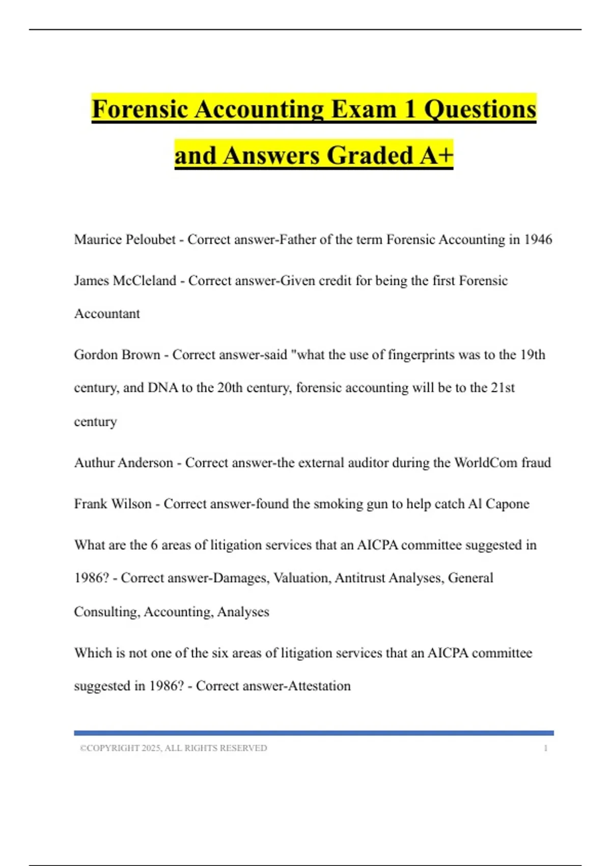 Forensic Accounting Exam 1 Questions and Answers Graded A+