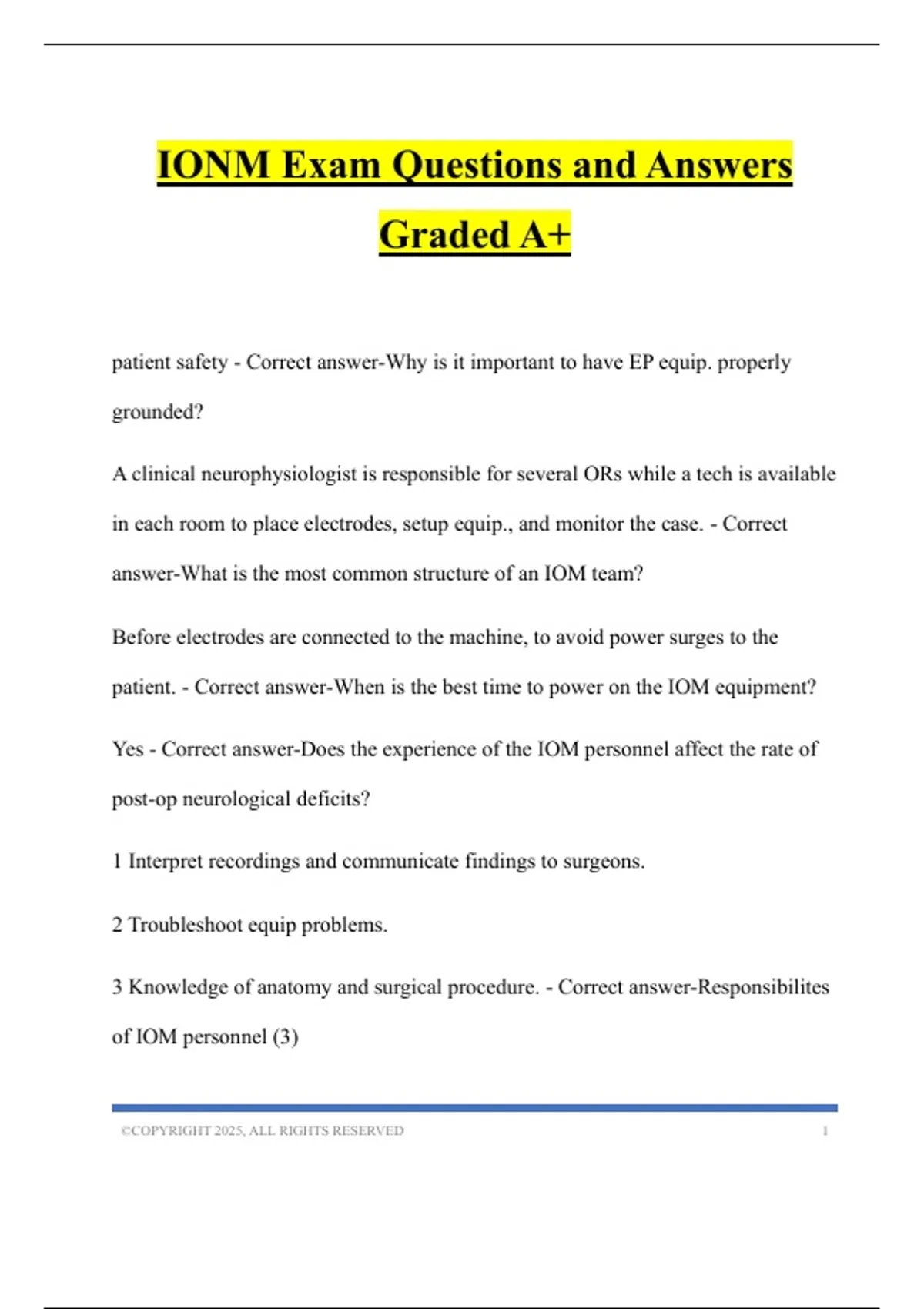 recognized on anatomical grounds only. - Correct answer-2 purposes of IOM