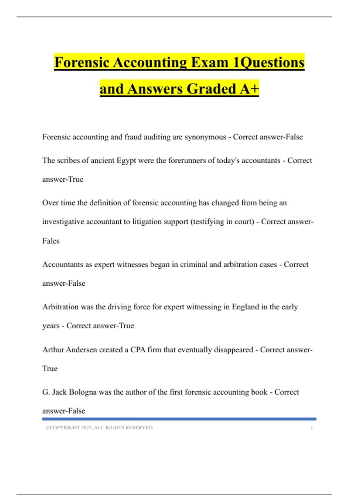Forensic accounting and fraud auditing are synonymous - Correct answer-False