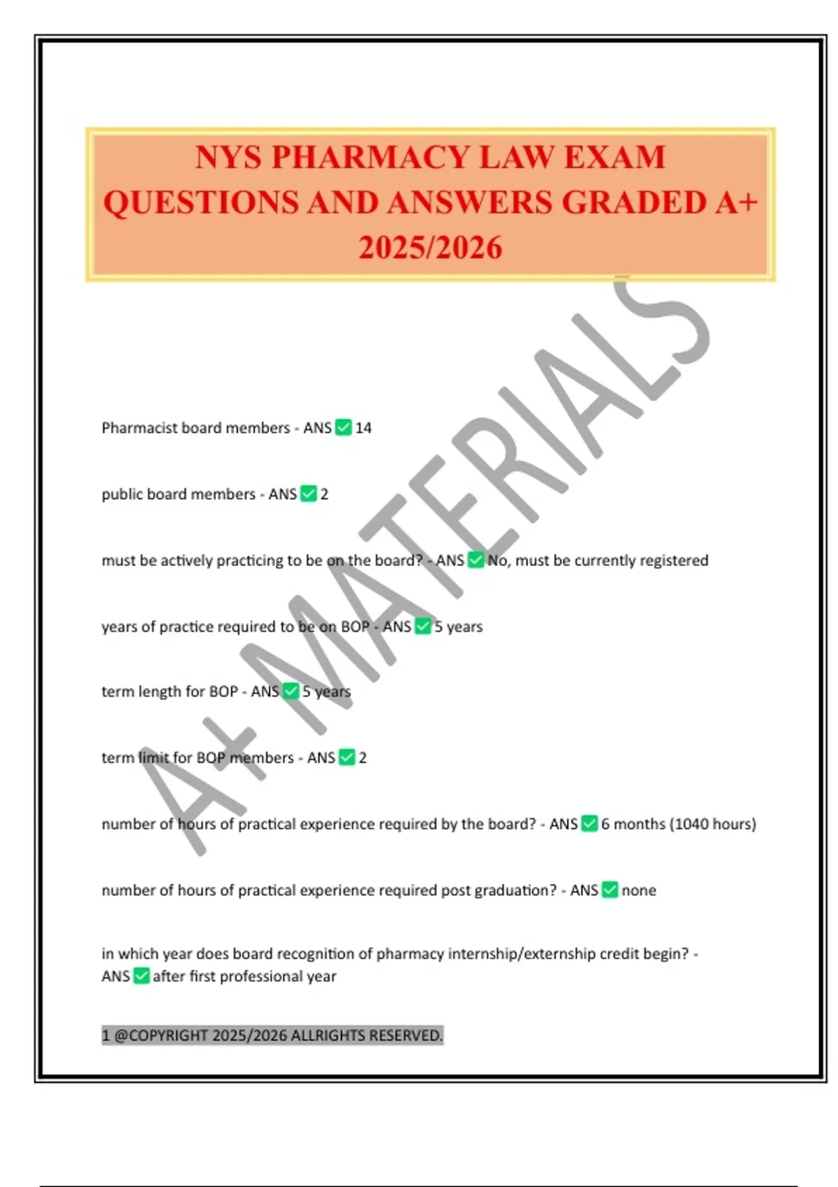 NYS PHARMACY LAW EXAM QUESTIONS AND ANSWERS GRADED A+ 2025/2026