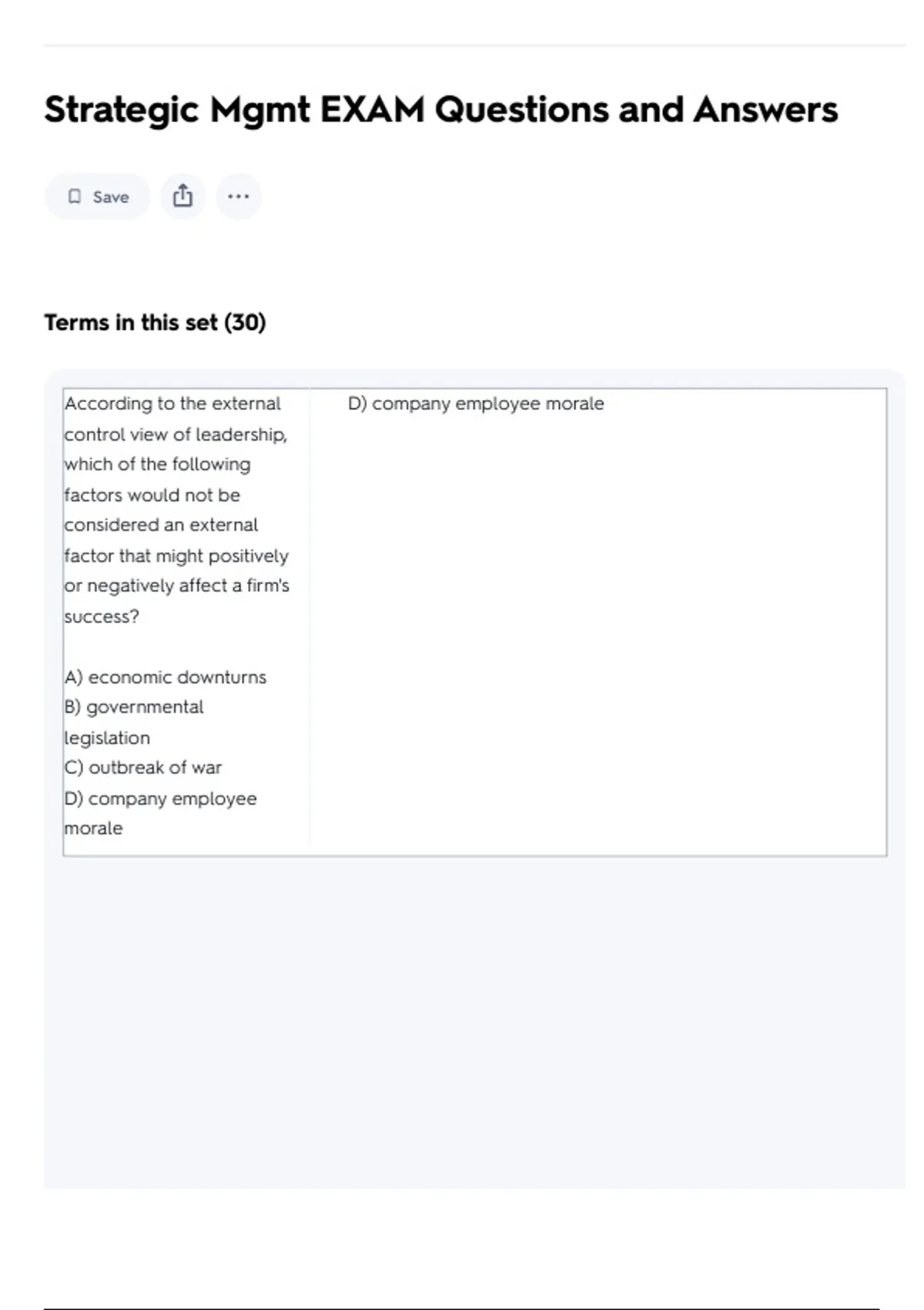 Strategic Mgmt EXAM Questions and Answers