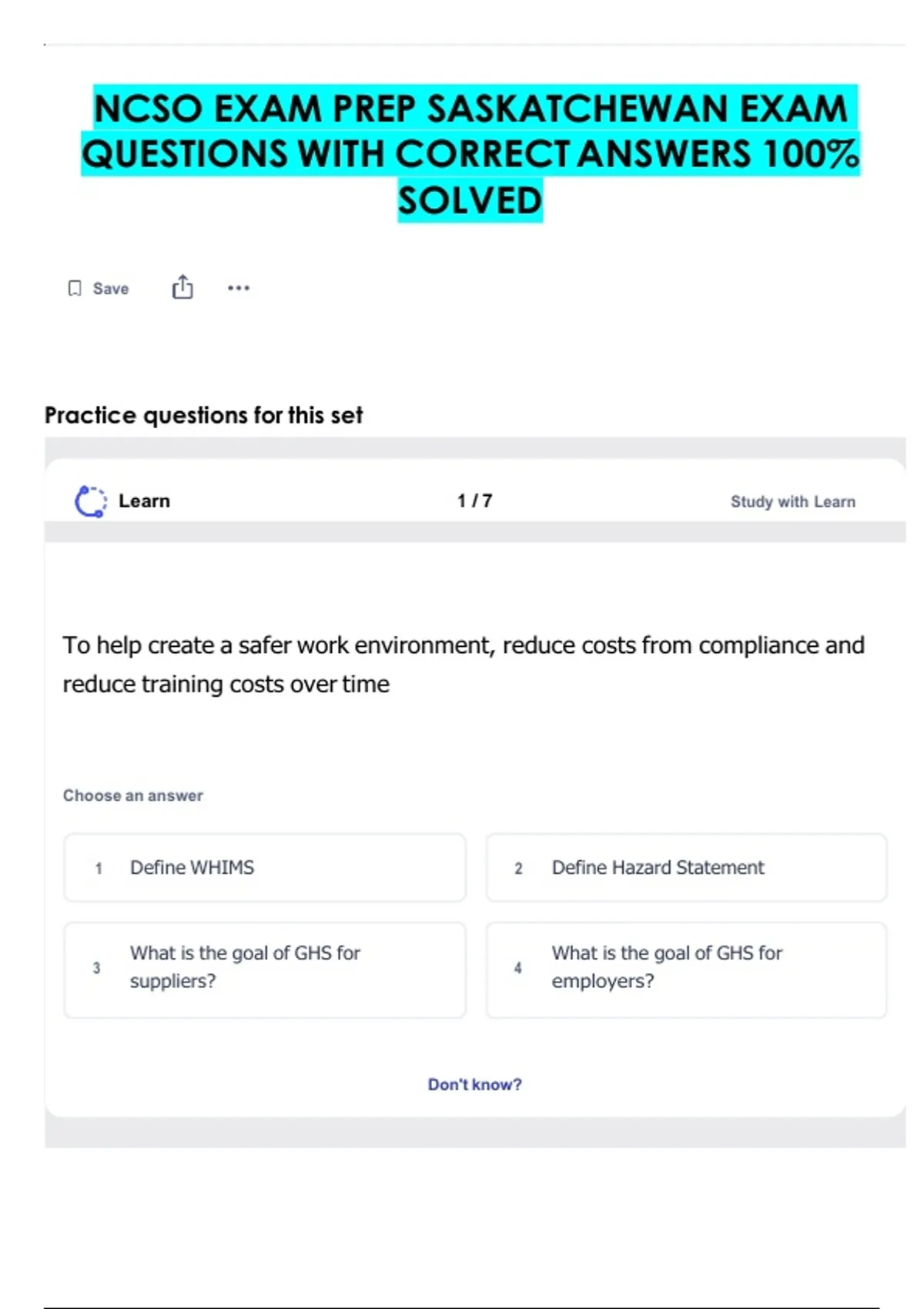 NCSO EXAM PREP SASKATCHEWAN EXAM QUESTIONS WITH CORRECT ANSWERS 100% SOLVED