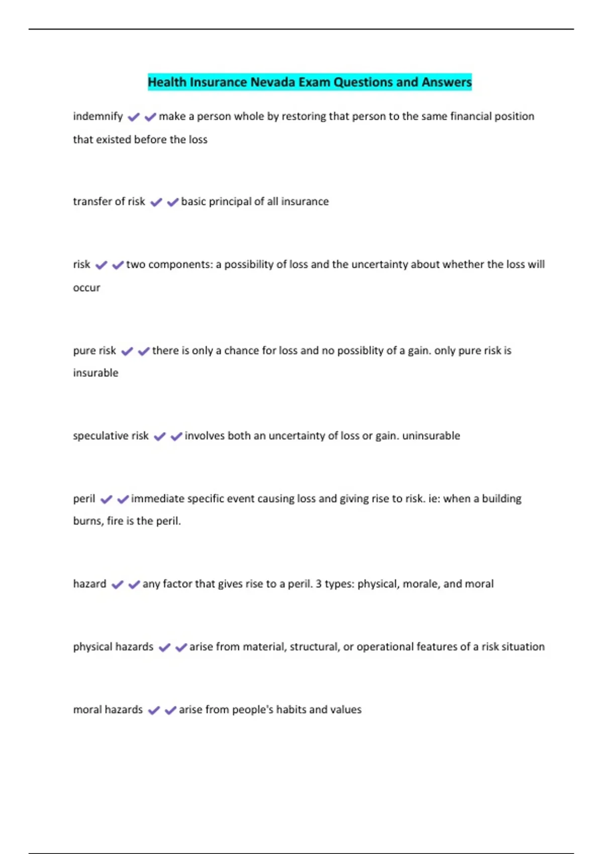 Health Insurance Nevada Exam Questions and Answers