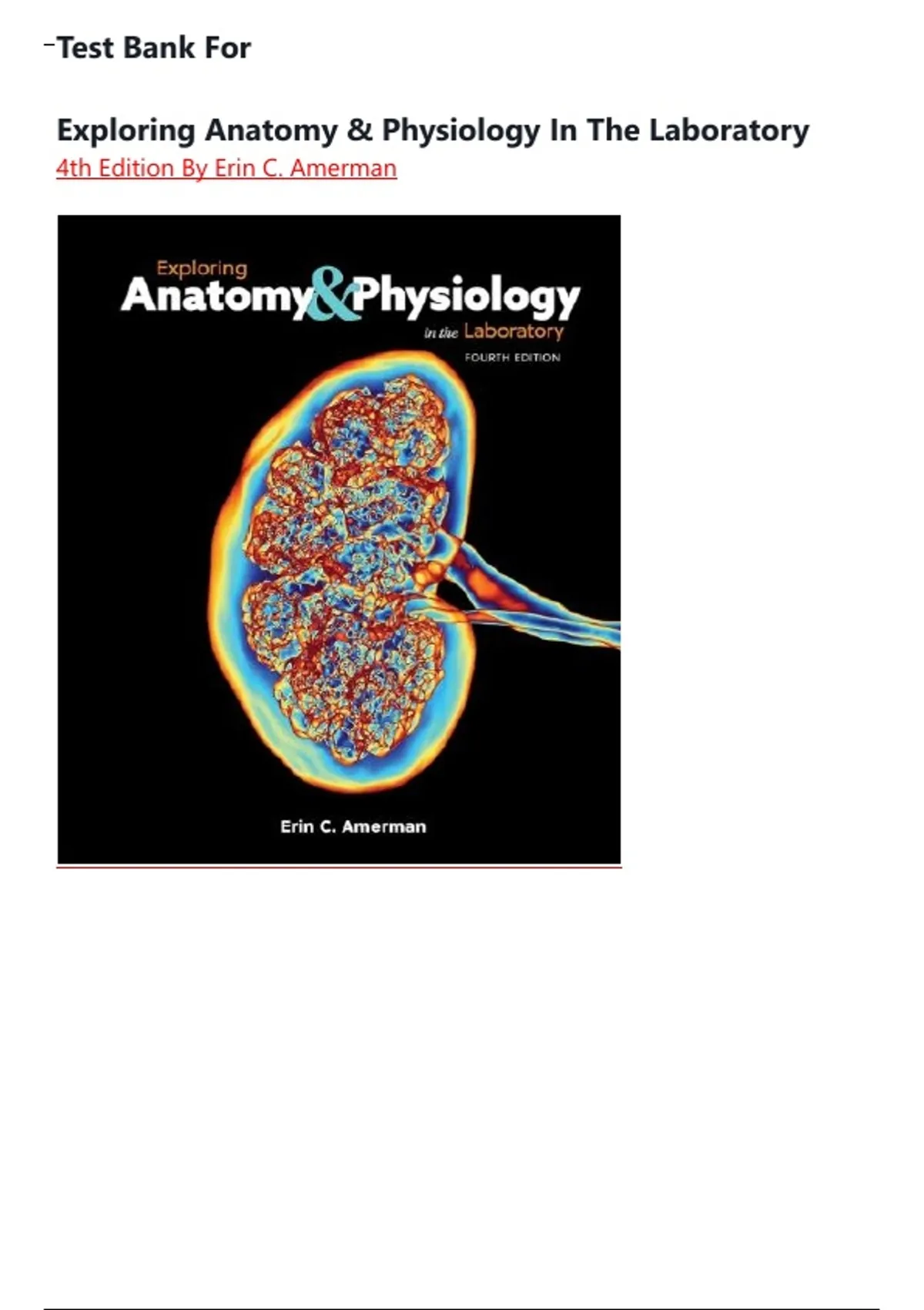 Test Bank For Exploring Anatomy & Physiology in the Laboratory 4th Edition by Erin C. Amerman|| All Chapters 1-29 Verified|| Complete Guide A+