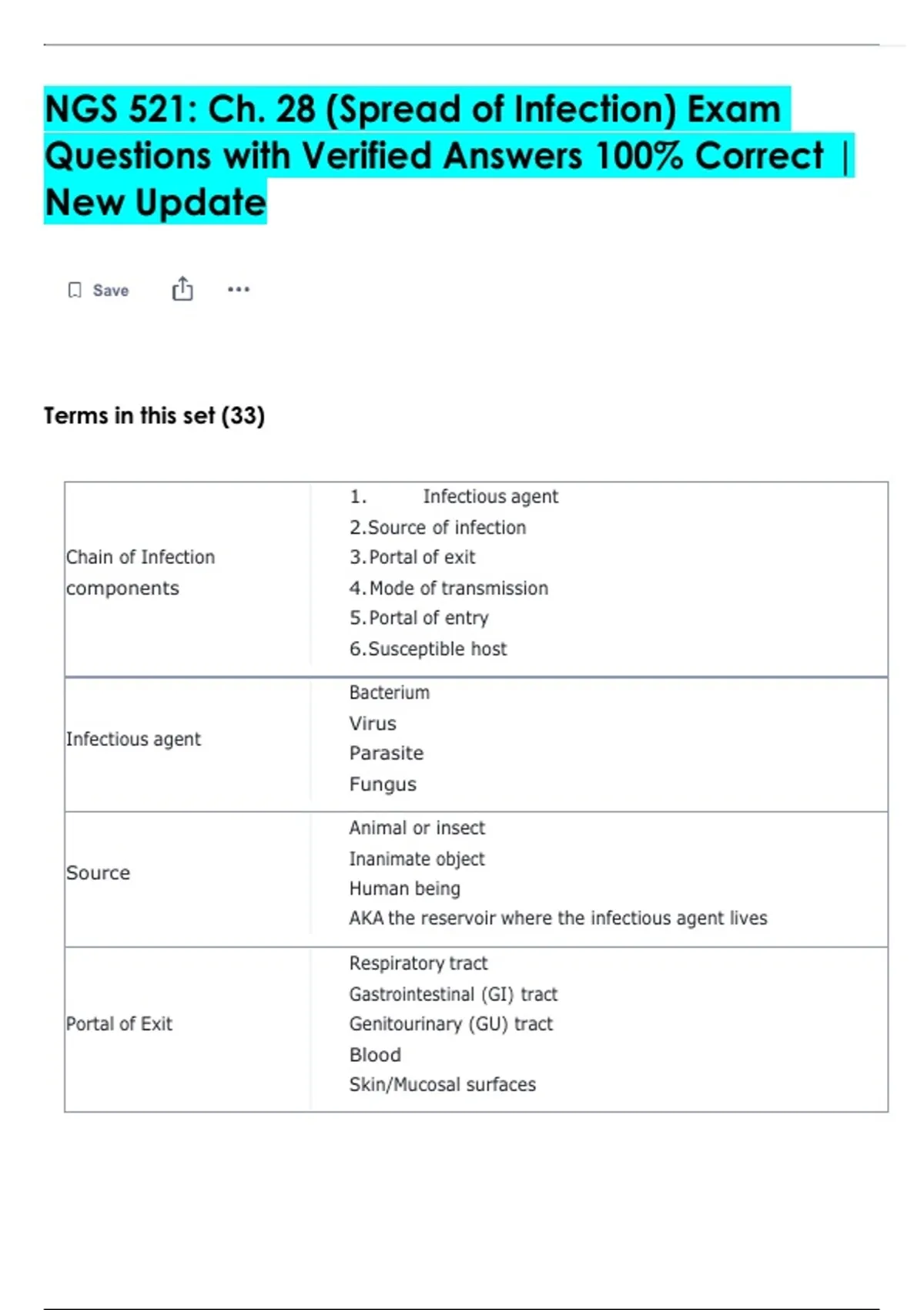 NGS 521: Ch. 28 (Spread of Infection) Exam