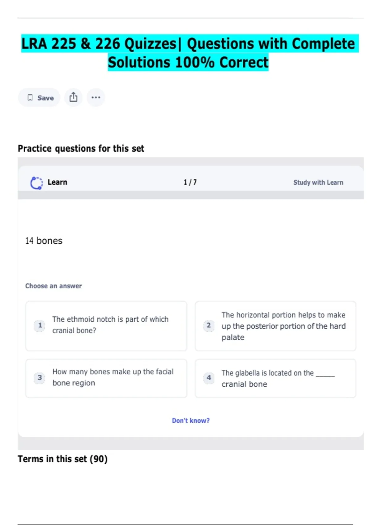 LRA 225 & 226 Quizzes| Questions with Complete Solutions 100% Correct