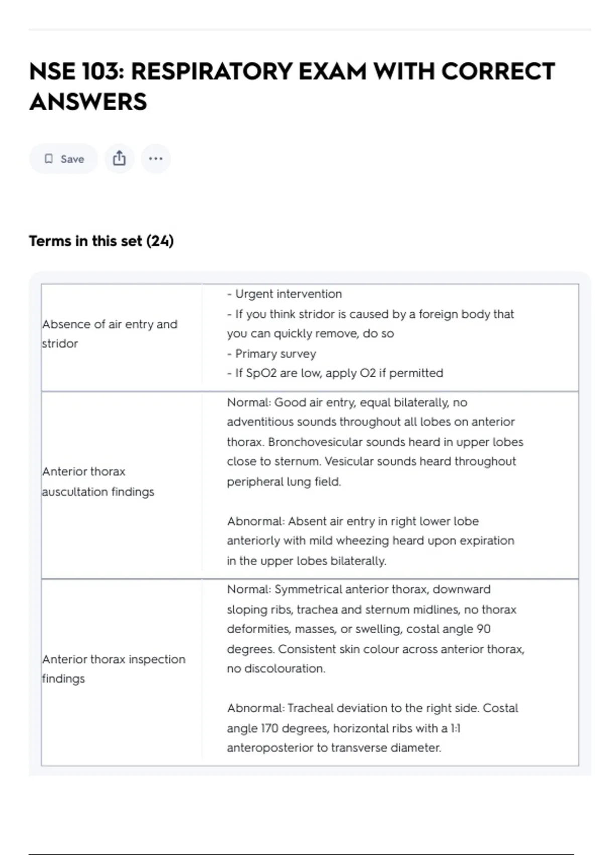 NSE 103: RESPIRATORY EXAM WITH CORRECT
