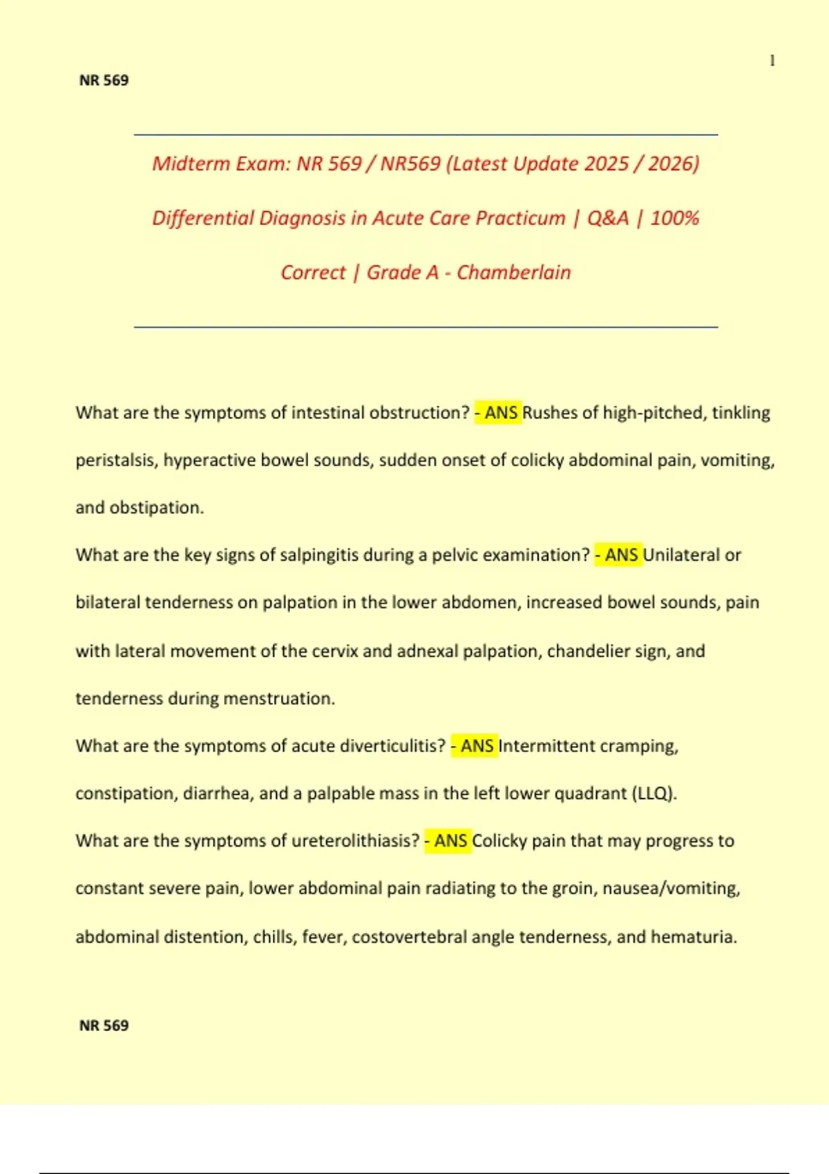 Differential Diagnosis in Acute Care Practicum | Q&A | 100%