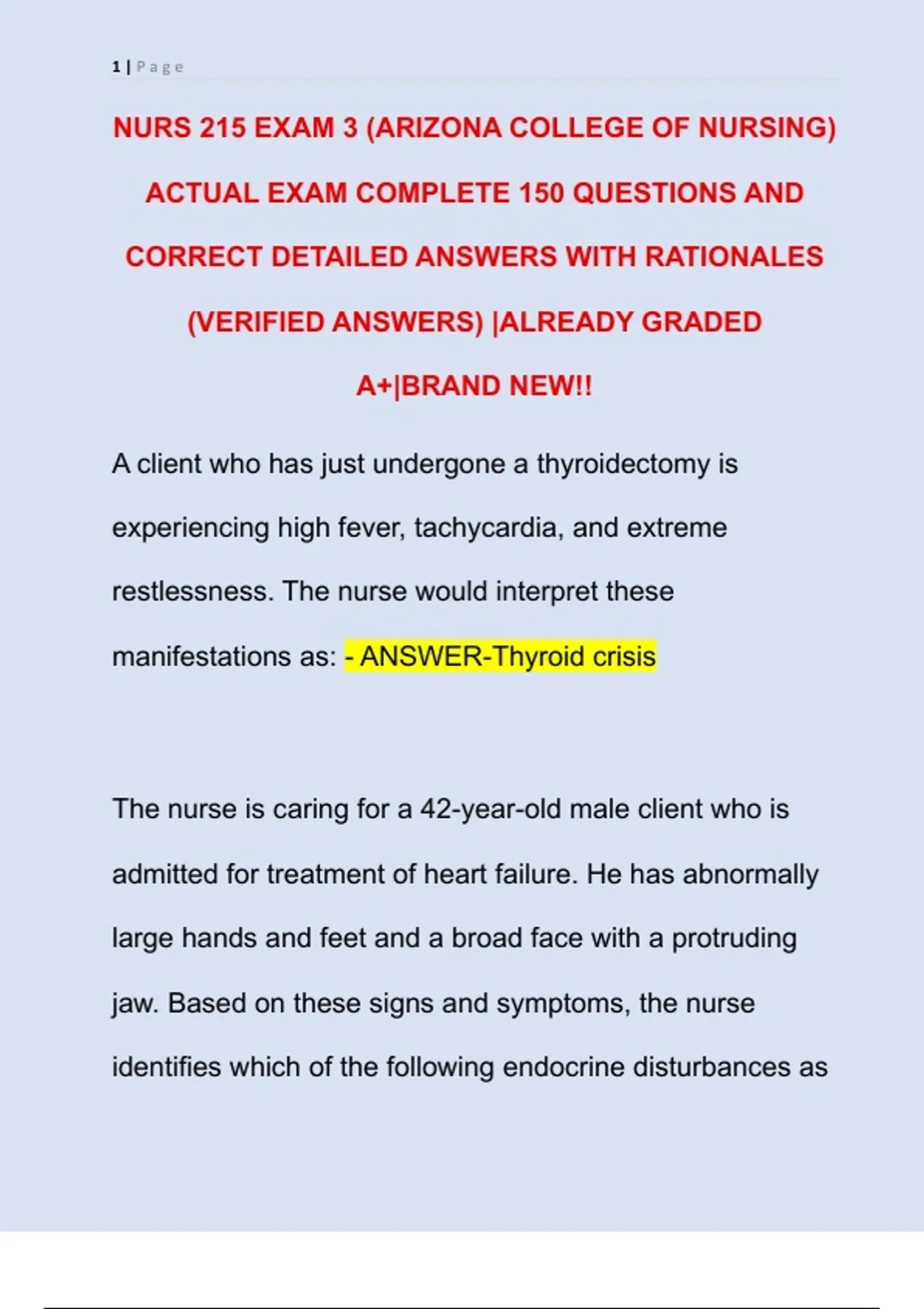 NURS 215 EXAM 3 (ARIZONA COLLEGE OF NURSING)