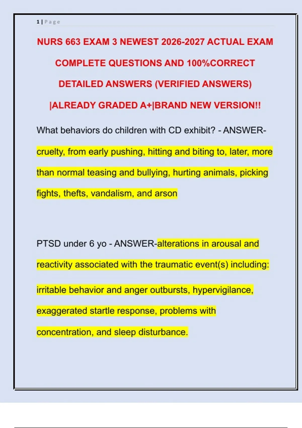 NURS 663 EXAM 3 NEWEST 2026-2027 ACTUAL EXAM