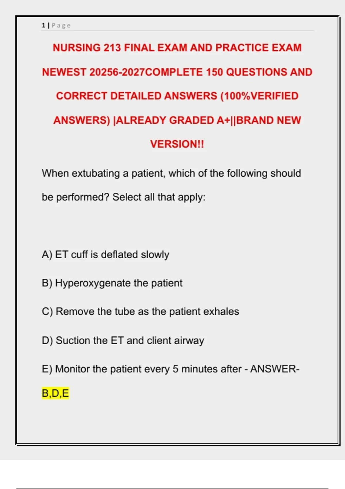 NURSING 213 FINAL EXAM AND PRACTICE EXAM
