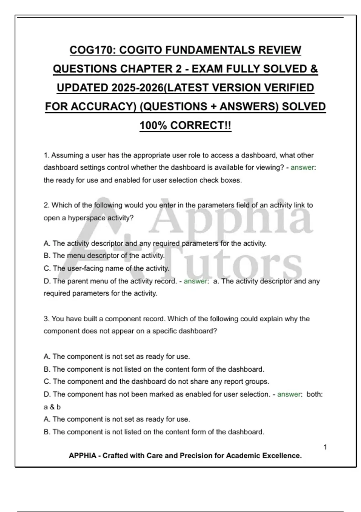 FOR ACCURACY) (QUESTIONS + ANSWERS) SOLVED