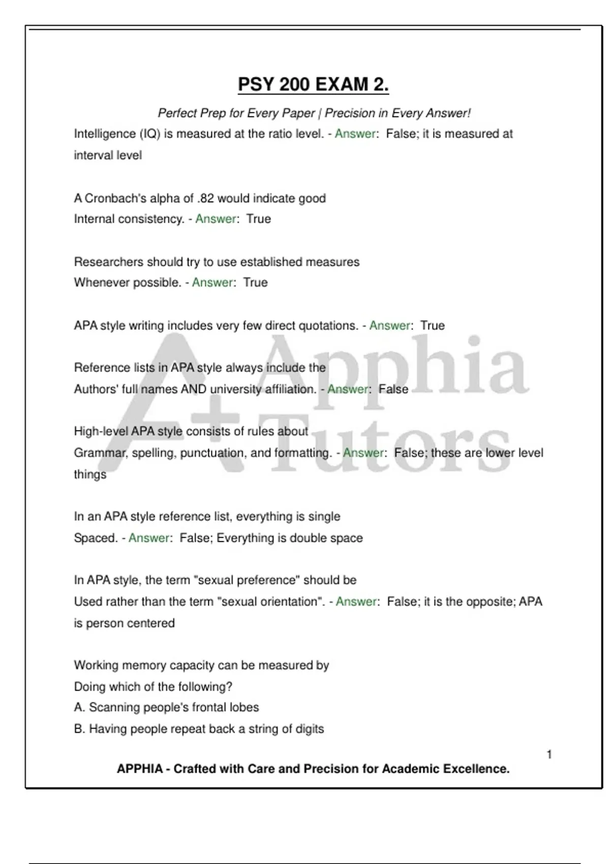PSY 200 EXAM 2. Perfect Prep for Every Paper | Precision in Every Answer!