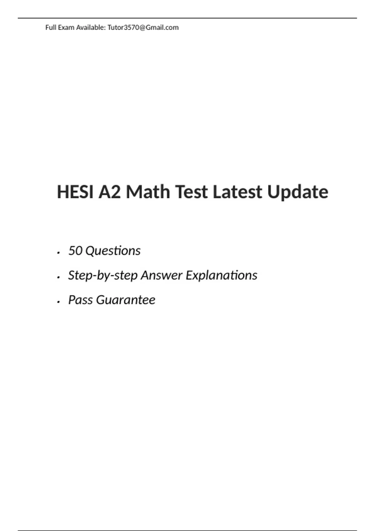 HESI A2 Math Test Latest Update 50 Questions Step-by-step Answer Explanations Pass Guarantee