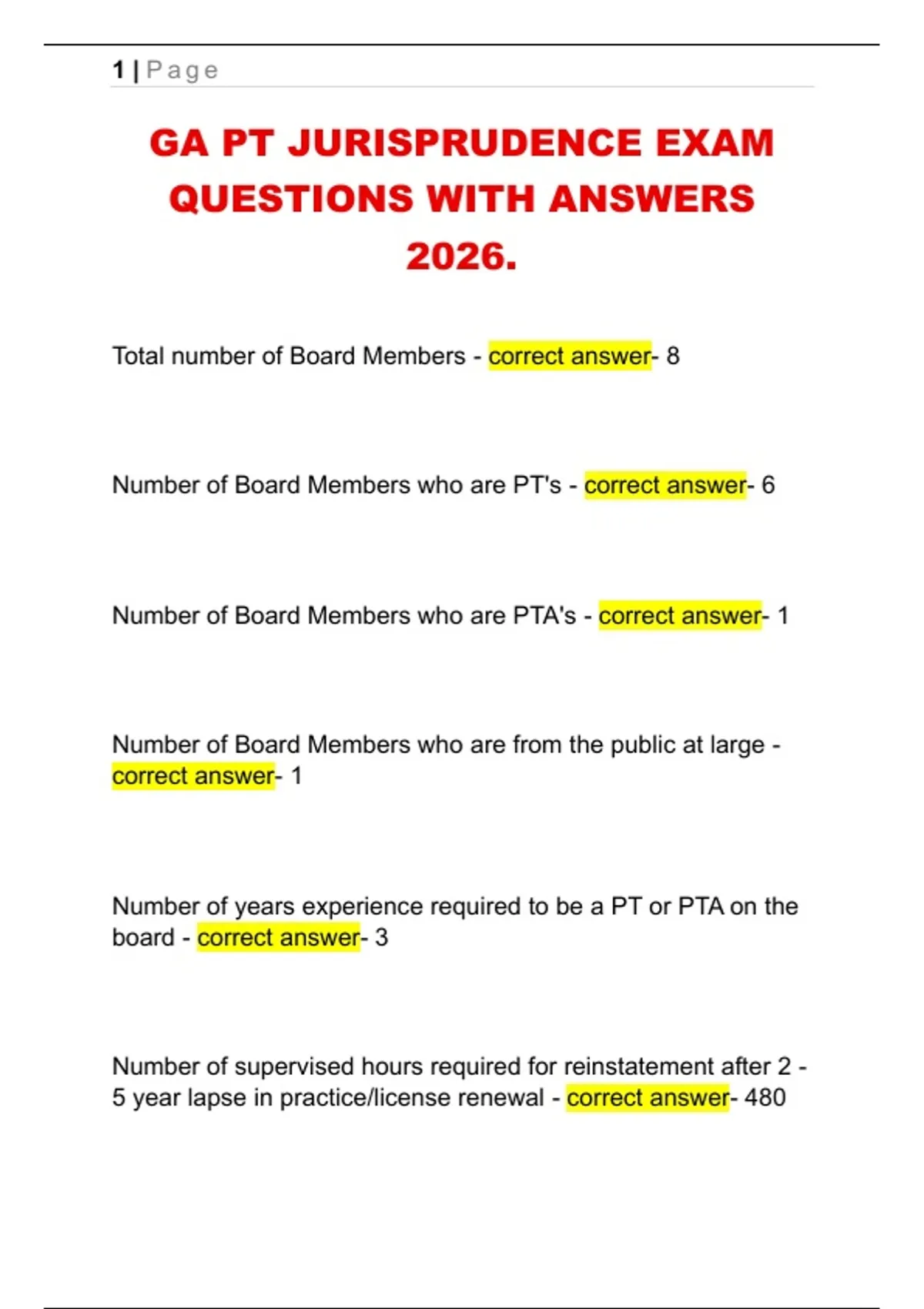 GA PT JURISPRUDENCE EXAM QUESTIONS WITH ANSWERS 2026.