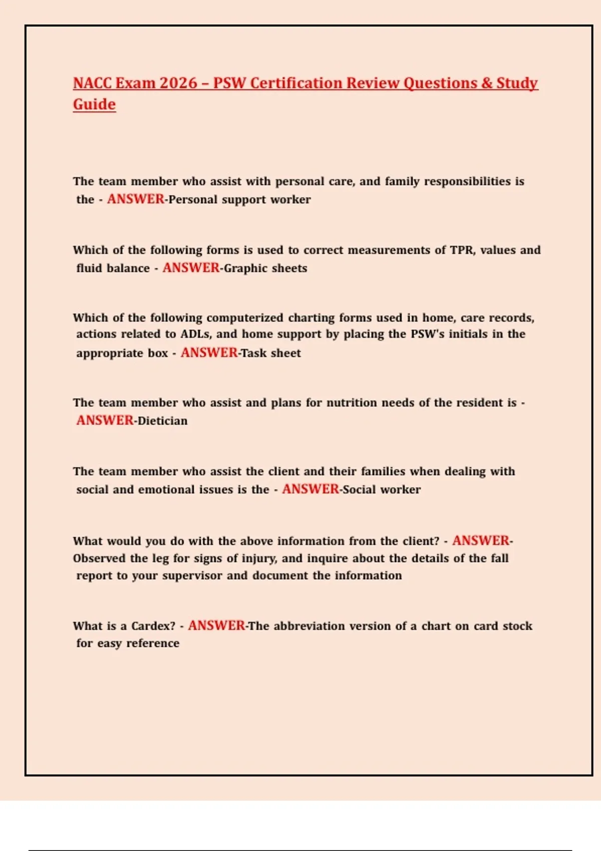 NACC Exam 2026 – PSW Certification Review Questions & Study Guide