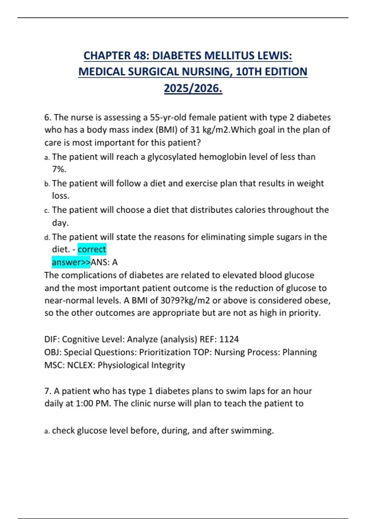 CHAPTER 48: DIABETES MELLITUS LEWIS: