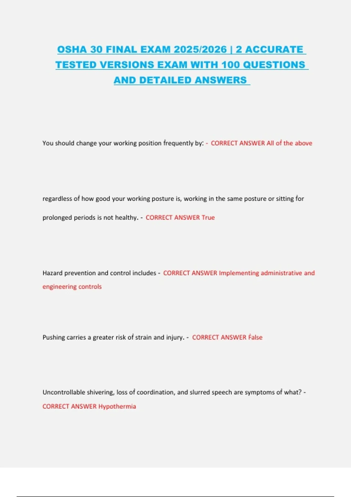 TESTED VERSIONS EXAM WITH 100 QUESTIONS